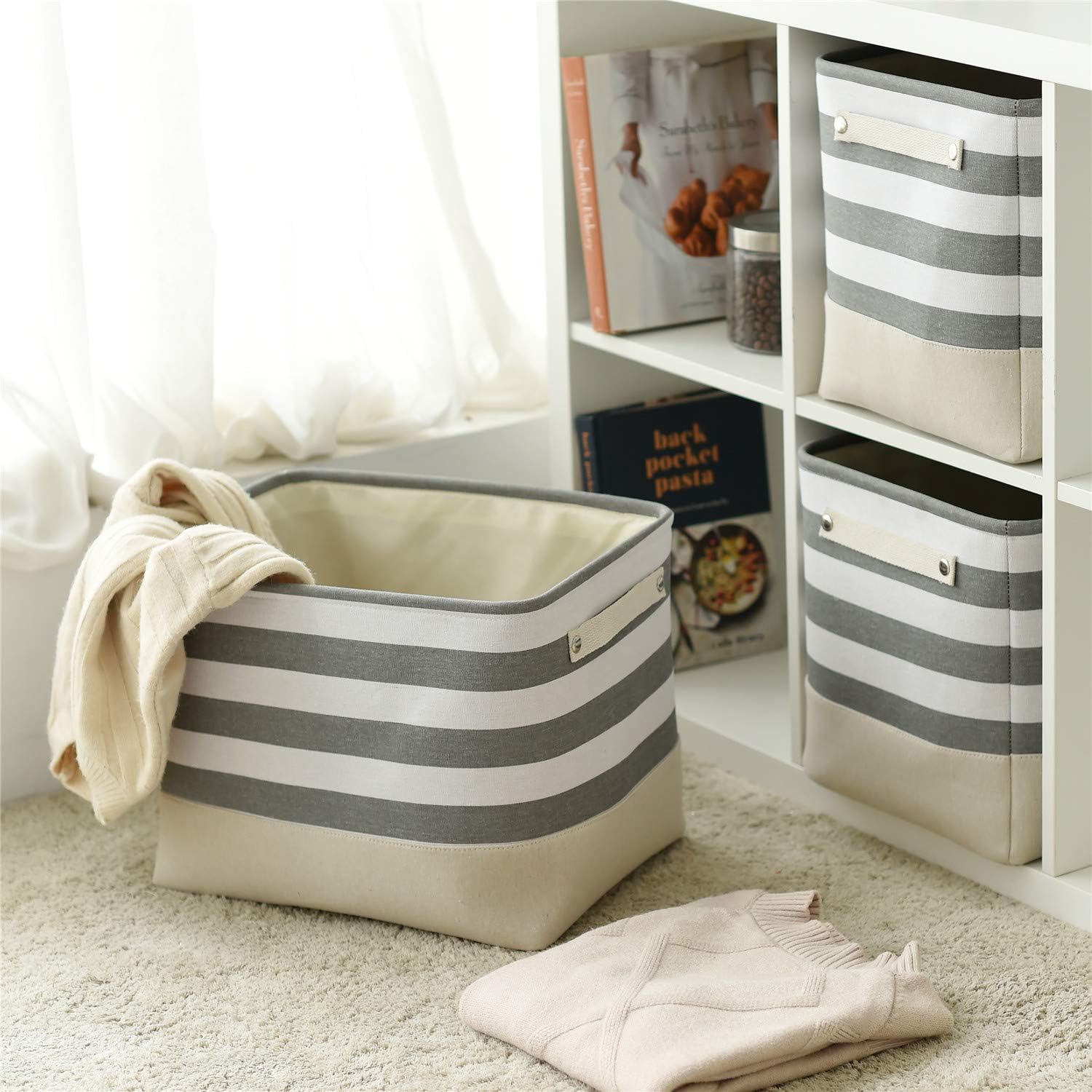• ARTISTIC: TheWarmHome Fabric Bins had great storage capacity and stylish. Minimalist design and neutral color exterior fabric can be integrated into any home decorations and styles. White cotton rope handles on the sides add a nature touch. The storage basket is like an art, not only provide a solution to many storage needs make home keep clean and tidy, doubles as a charming decoration. TheWarmHome, WARM YOUR HOME