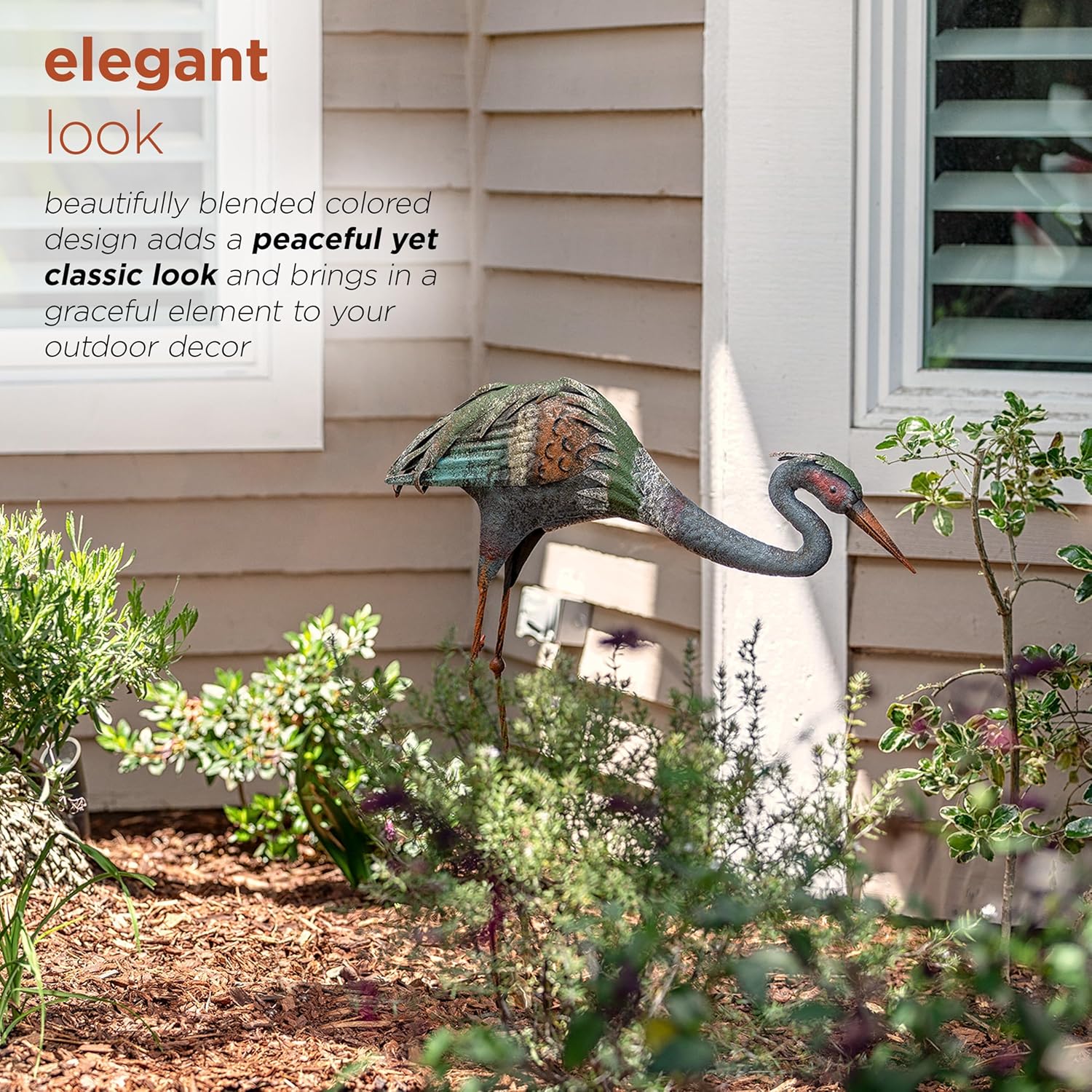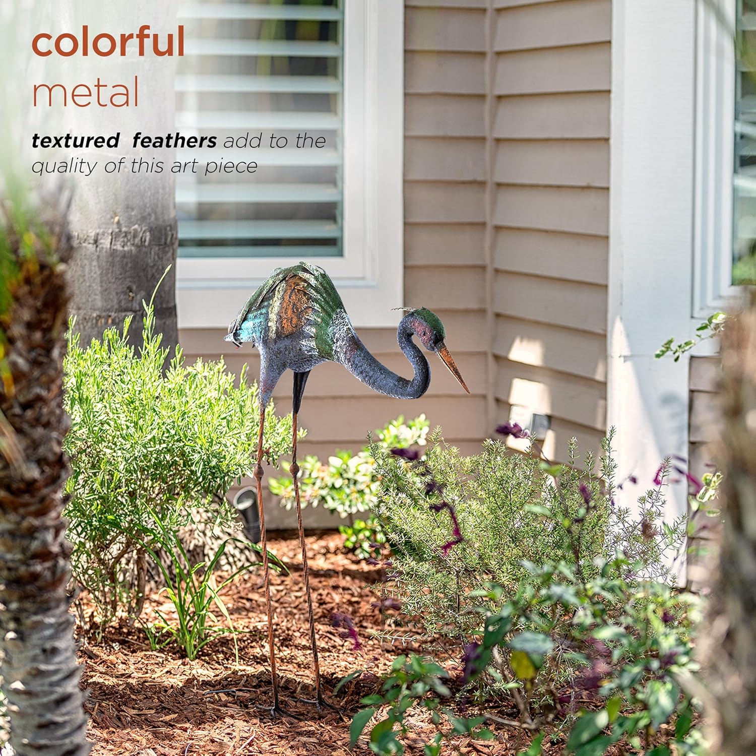• CRANE STATUE: Colorful rustic crane looks great in your yard or garden, or placed on your deck or porch