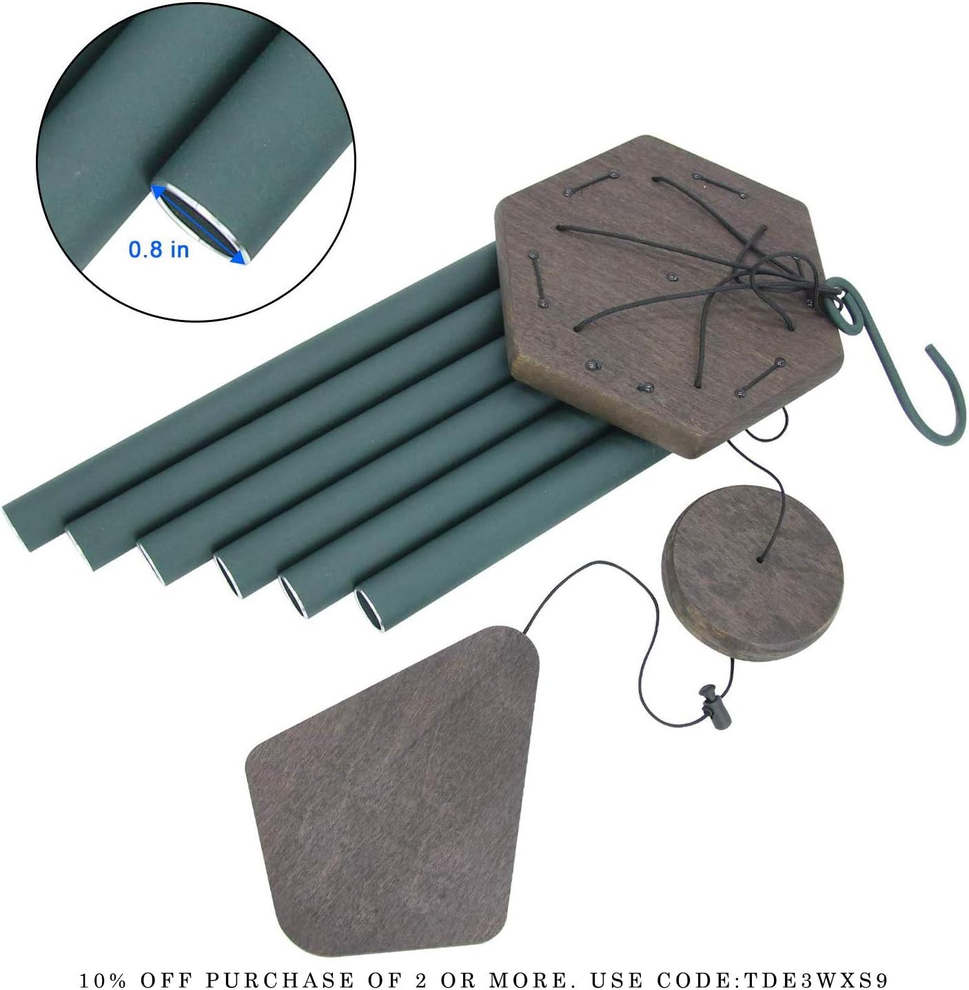 • Wind Chimes Outdoor- 30'' is the best size for your Outdoor and Indoor Decor. This decorative chime comes with a stronger metal hook, easily to hang. The longest tube is 14.3''. 6 aluminum powder-coated tubes are hand-tuned by our professional tuning experts to achieve a superior musical performance. Heavy duty nylon cording high density beech wood striker made from FSC-Certified wood, for a clear tone and resonances. Thick tubing wall creates a longer lasting deep tone. The sound is soft, deep tone and rela