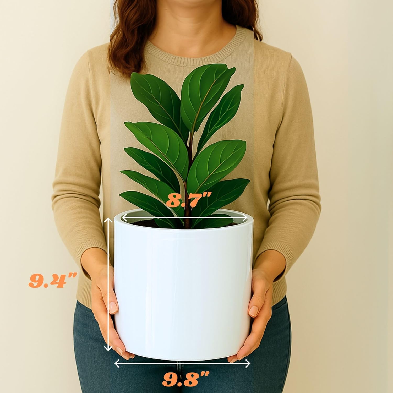 • THE PERFECT POT SIZE FOR YOUR PLANTS – Each glossy flower pot is 9.8” in outer diameter and 8.7” in inner diameter, allowing you to conveniently fit your favorite plant. Dimensions: Outer width: 9.8" | Inner width: 8.7" | Height: 9.4"
