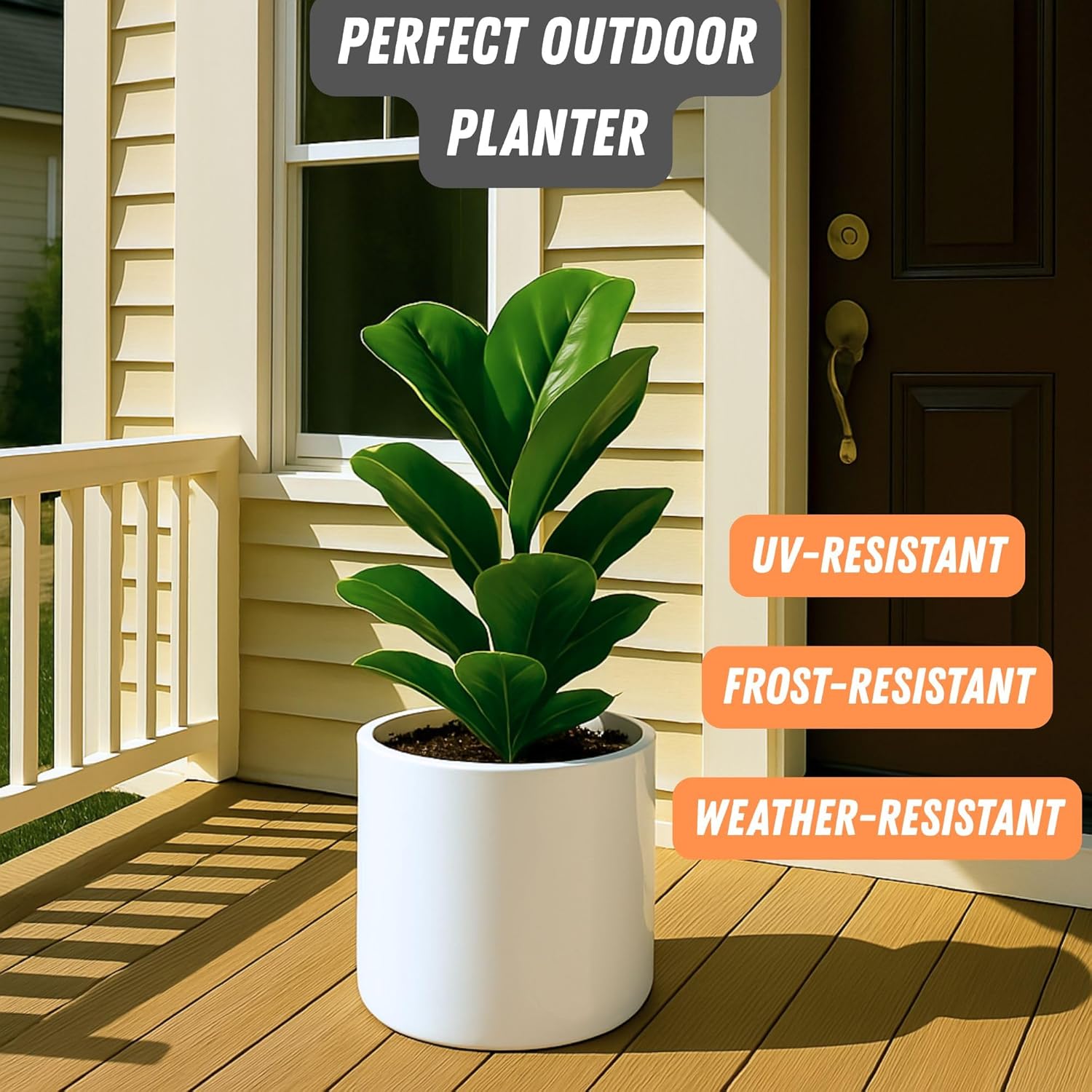 Fox & Fern 10 Inch Plant Pot with Drainage Plug — Premium Lightweight Fiberstone Glossy White Planter; Indoor & Outdoor Planter; 10 Inch Pots for Plants; Weather Resistant & UV Resistant
