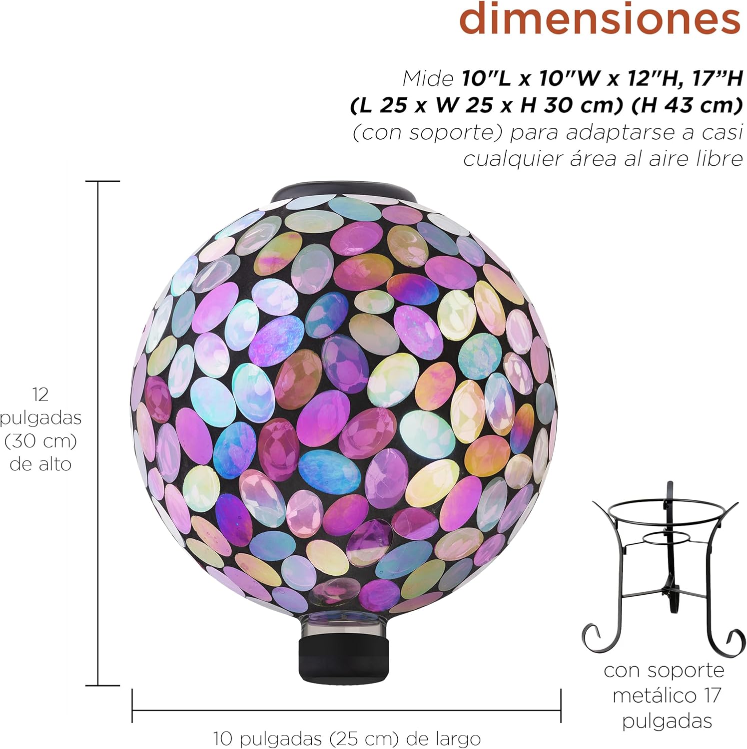 • ILLUMINATE YOUR GARDEN: Features 10 solar powered LED lights to keep your outdoor gazing ball lit up throughout the night for a bright, colorful display