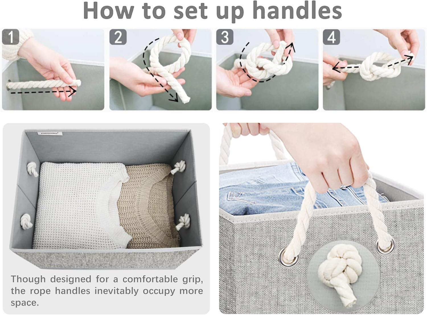 • Closet baskets feature two soft rope handles for comfortable grasping and easy carrying.