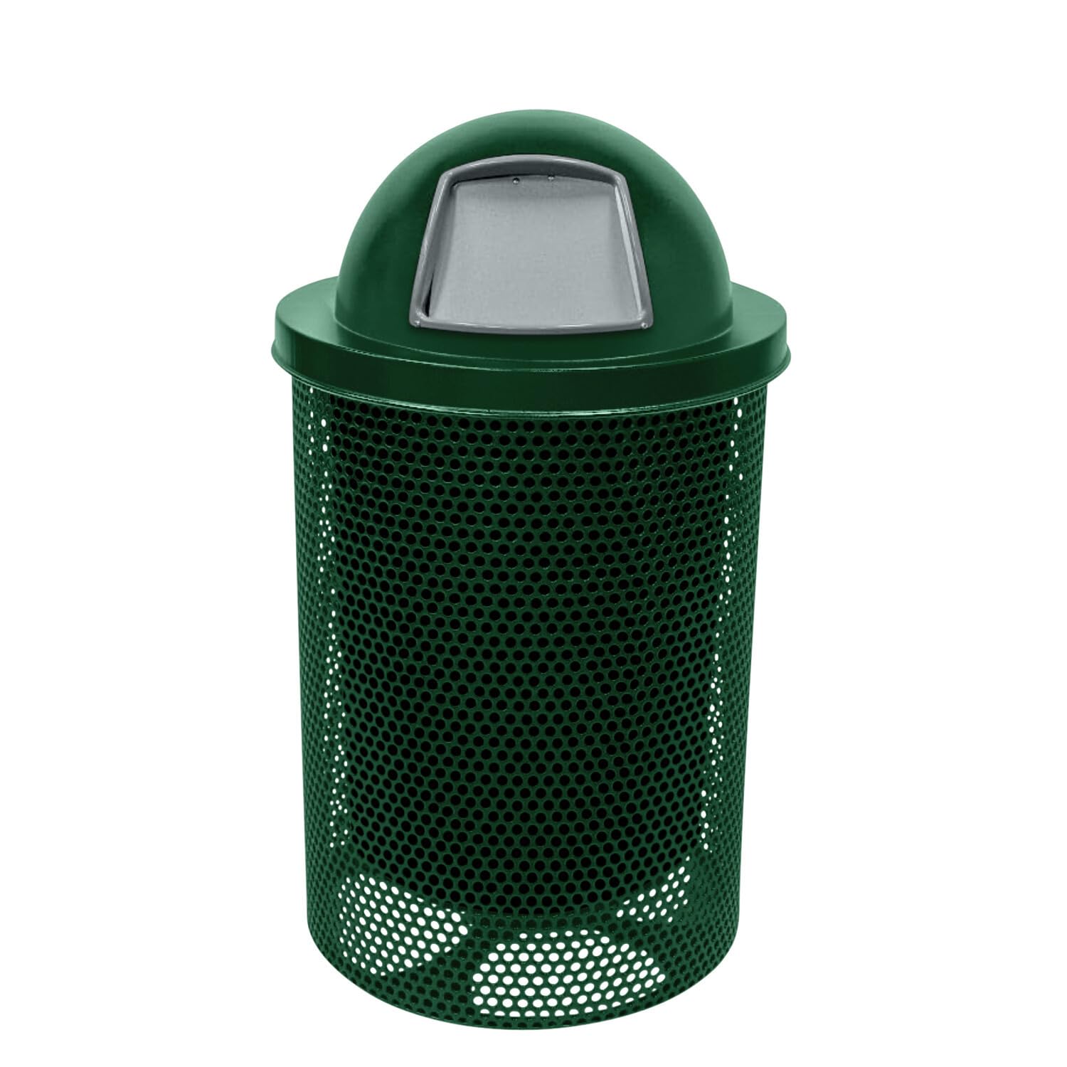 COATEDOUTDOORFURNITURE RDT-P-GRN Heavy Duty Round Trash Receptacle with Dome Top, Liner Included, 32 Gallon, Green, Made in America