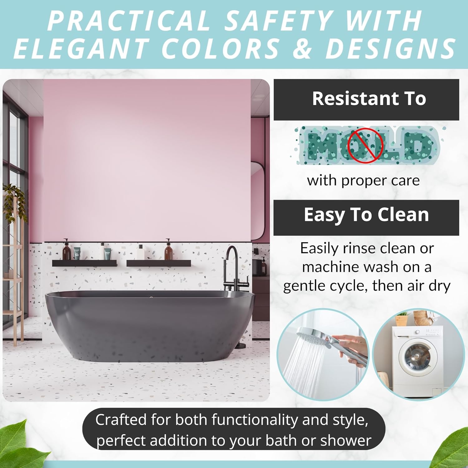 • Modern, Sturdy & Made To Last: Complement your stylish bath rugs décor with an eye-catching bath mat in many color variations. Place it in the washing machine, to keep it fresh, clean and hygienic for a long time!