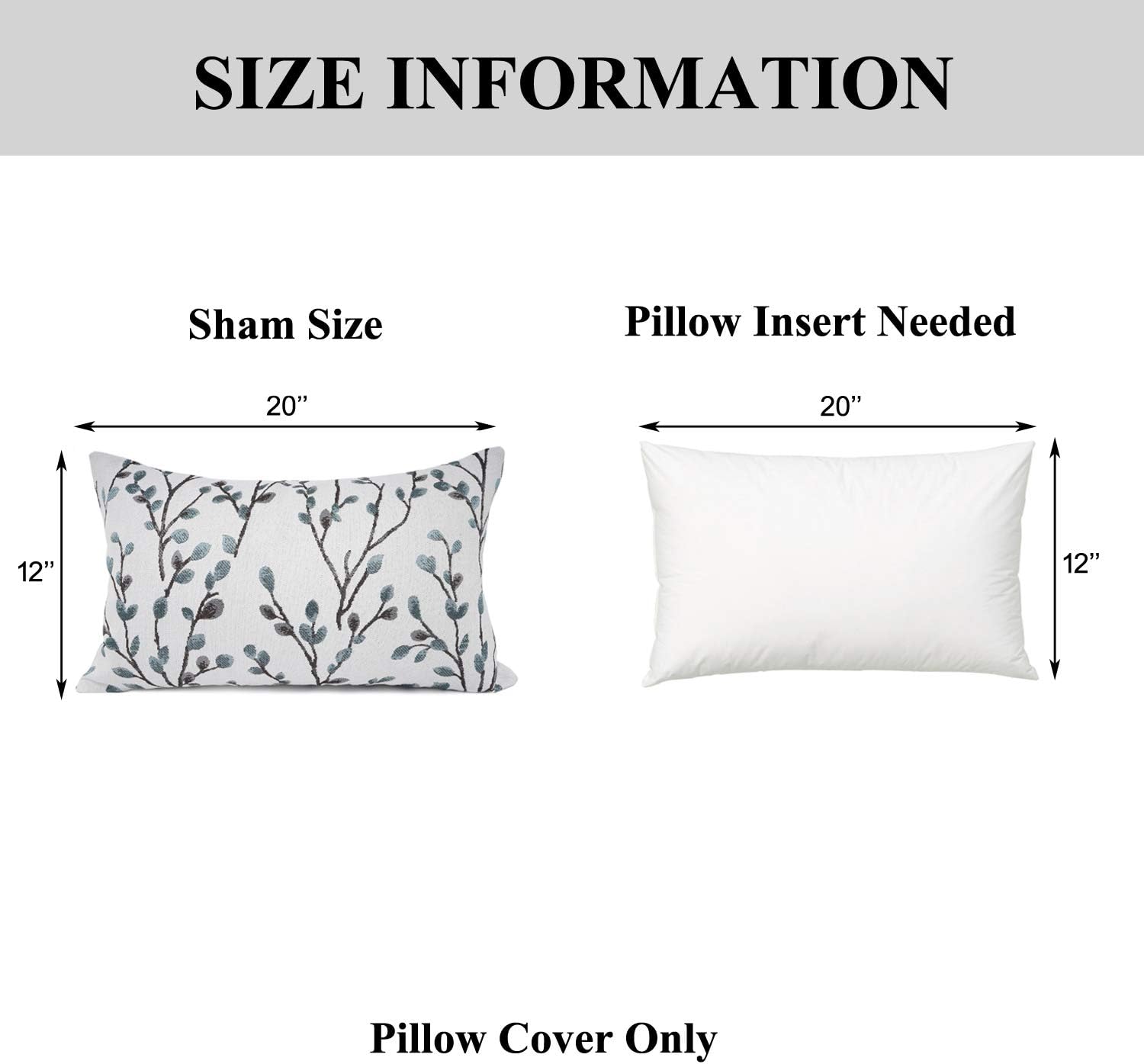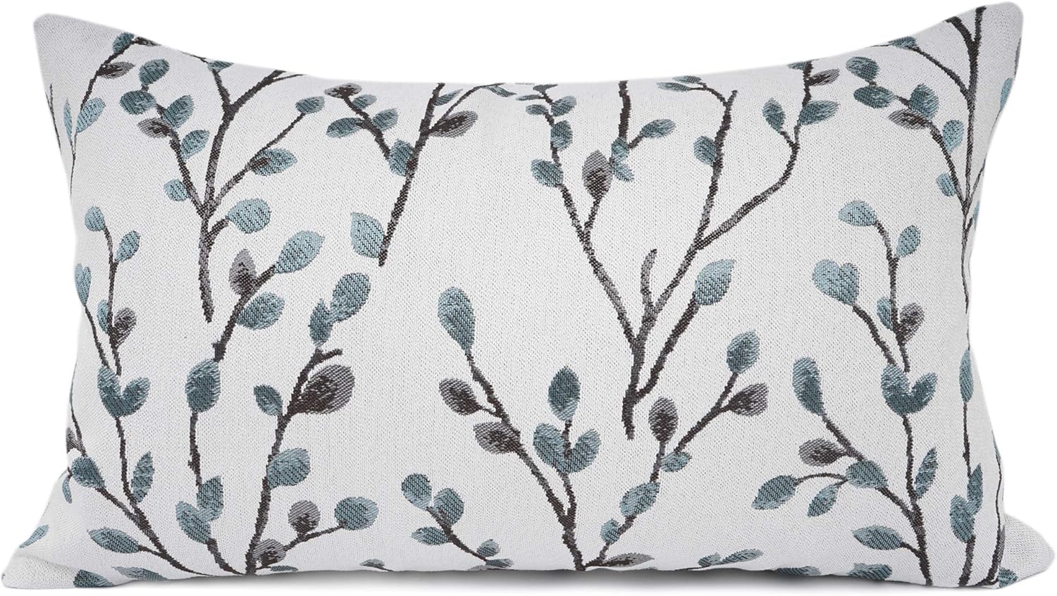 YOUR SMILE Classical Embroidery Jacquard Farmhouse Oblong Rectangle Chenille Teal Leaf Decorative Throw Pillow Case,12x20 inch