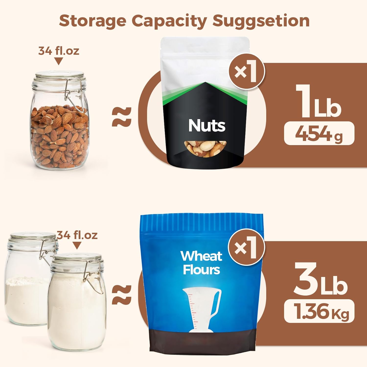• Airtight Mason Jars: Glass jars with airtight lid is made of food-graded glass; Each kitchen canisters for countertop is well sealed, equipped with silicone gasket and a stainless iron locking clamp to make sure your food stay clean and fresh in storage