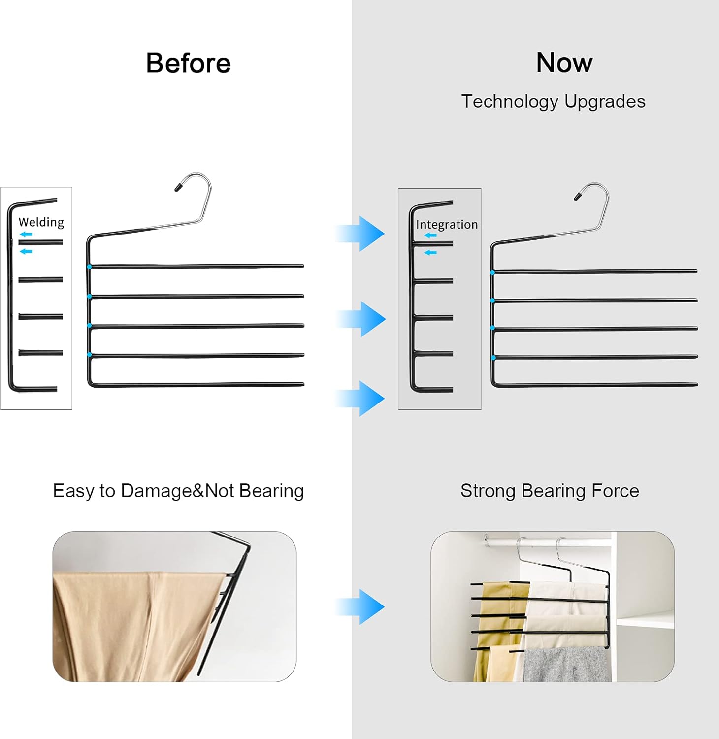 • Durable heavy metal construction, We upgrade our design without any soldering on the major structure. No breakking even you hang 5 pairs heavy pants on.Slip-resistant vinyl coating protect the pants from slipping off.