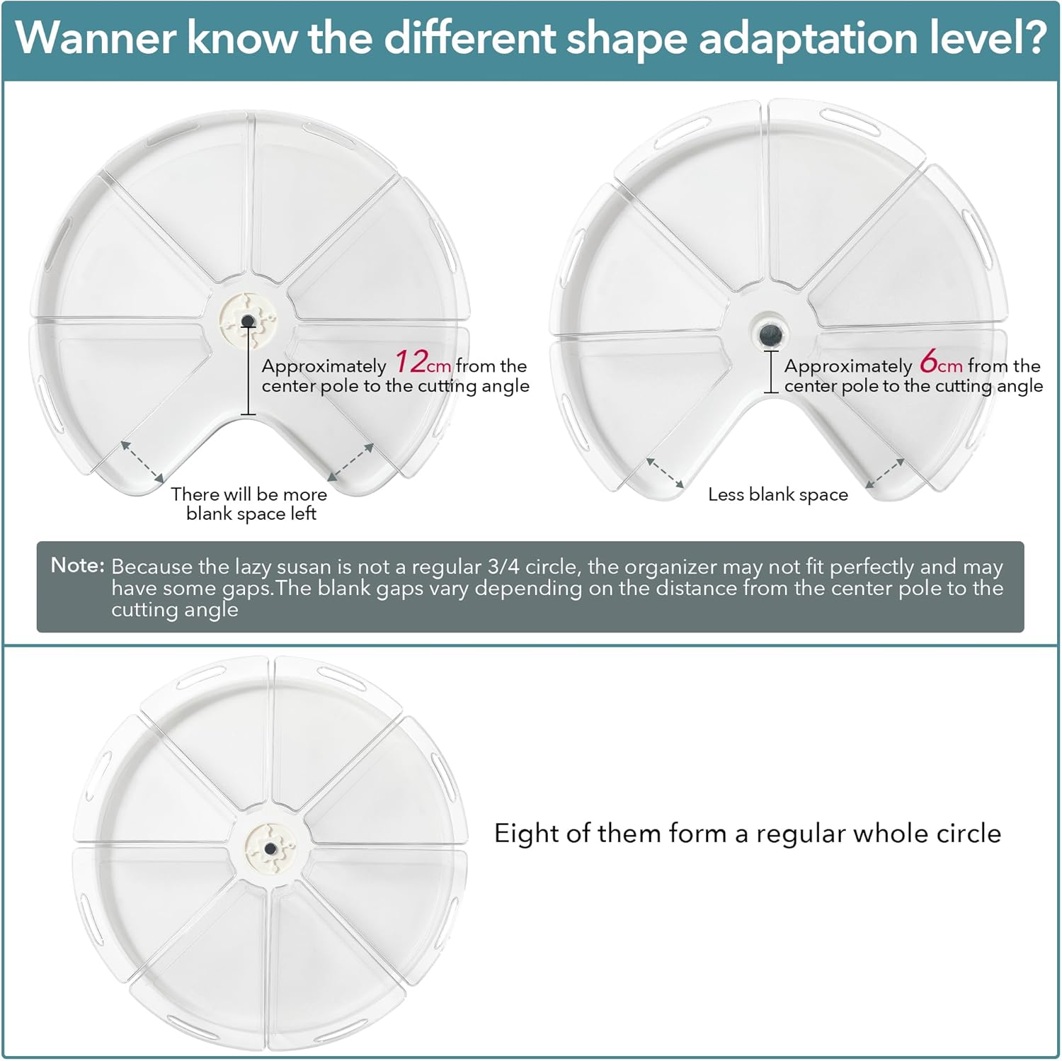 • SUITABLE SIZE: Without Labels; The 1/8 wedge-shaped condiment container can fit different size of food while neatly organized them in places. It comes in a set of 4 pieces and is most suitable for 26"- 27” diameter corner cabinet