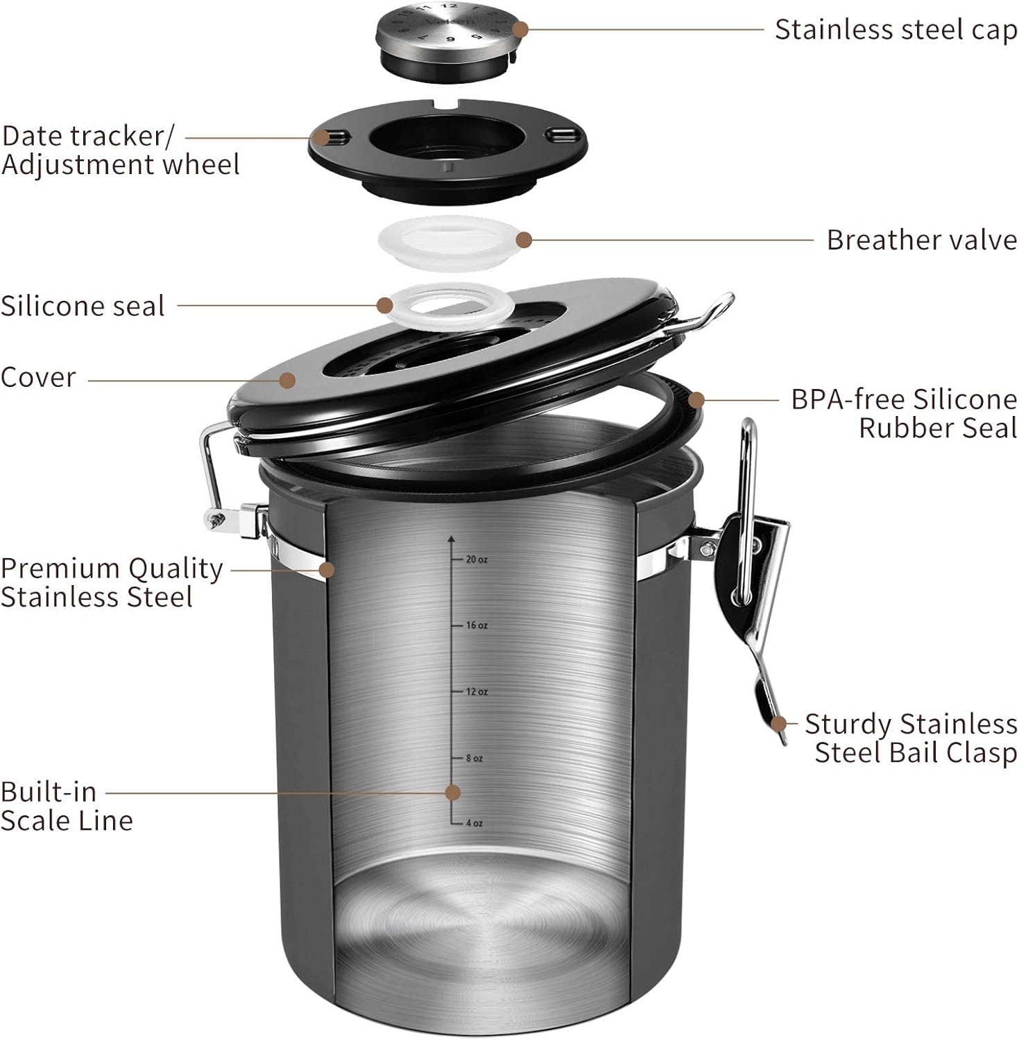 • 304 Stainless Steel - As a coffee lover, you must never compromise on the material and quality of your coffee container. Veken containers are made of thick, high quality stainless steel to create a comfortable environment for coffee beans.