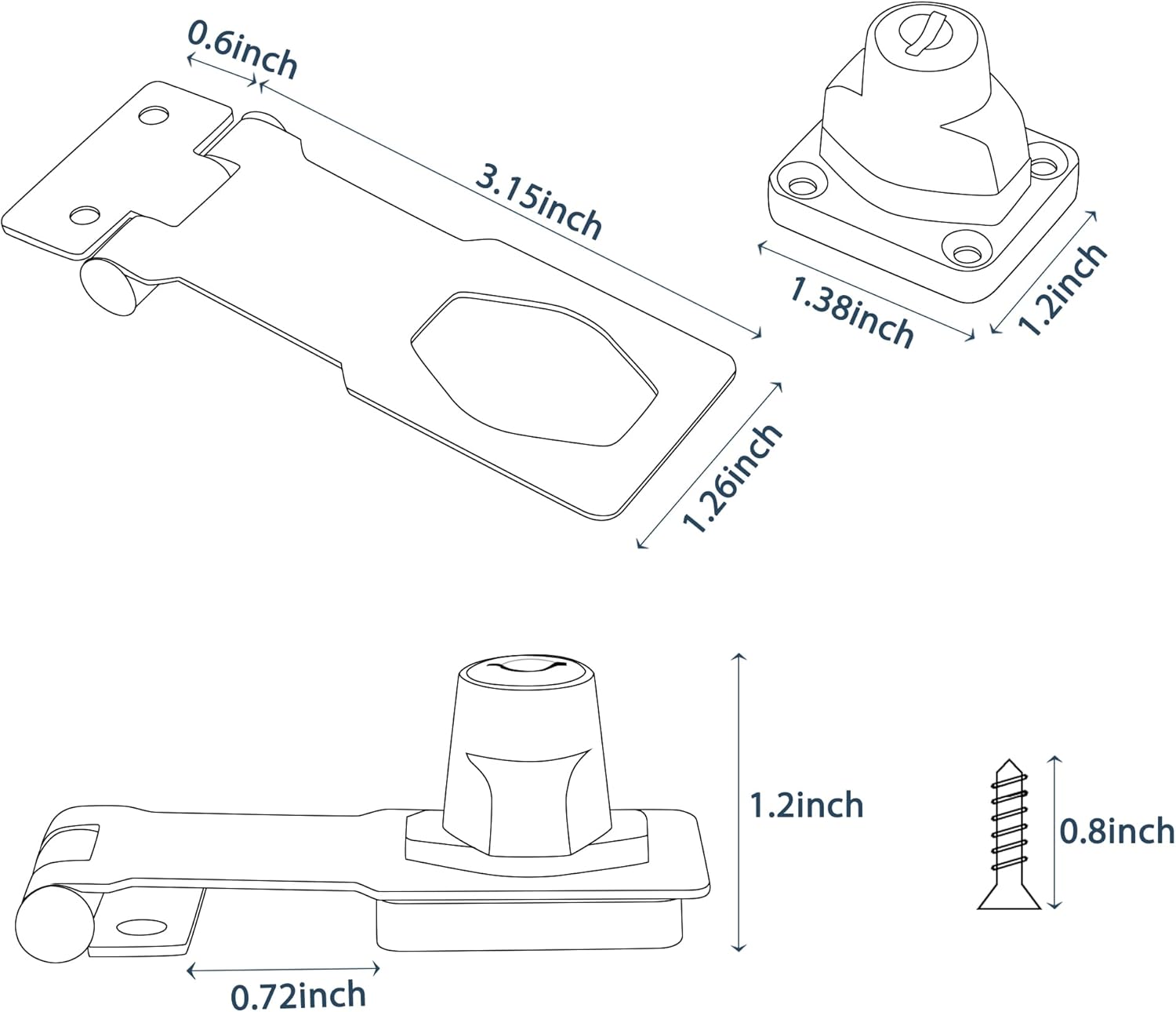 • 【Automatic Fast Security Lock】With automatic lock cylinder, it can be quickly locked by directly turning it 90°.The keyed hasp lock uses high quality lock core and comes with keys, which is simple but secure and eliminates the need for padlocks, offers reliable protection against intruders.