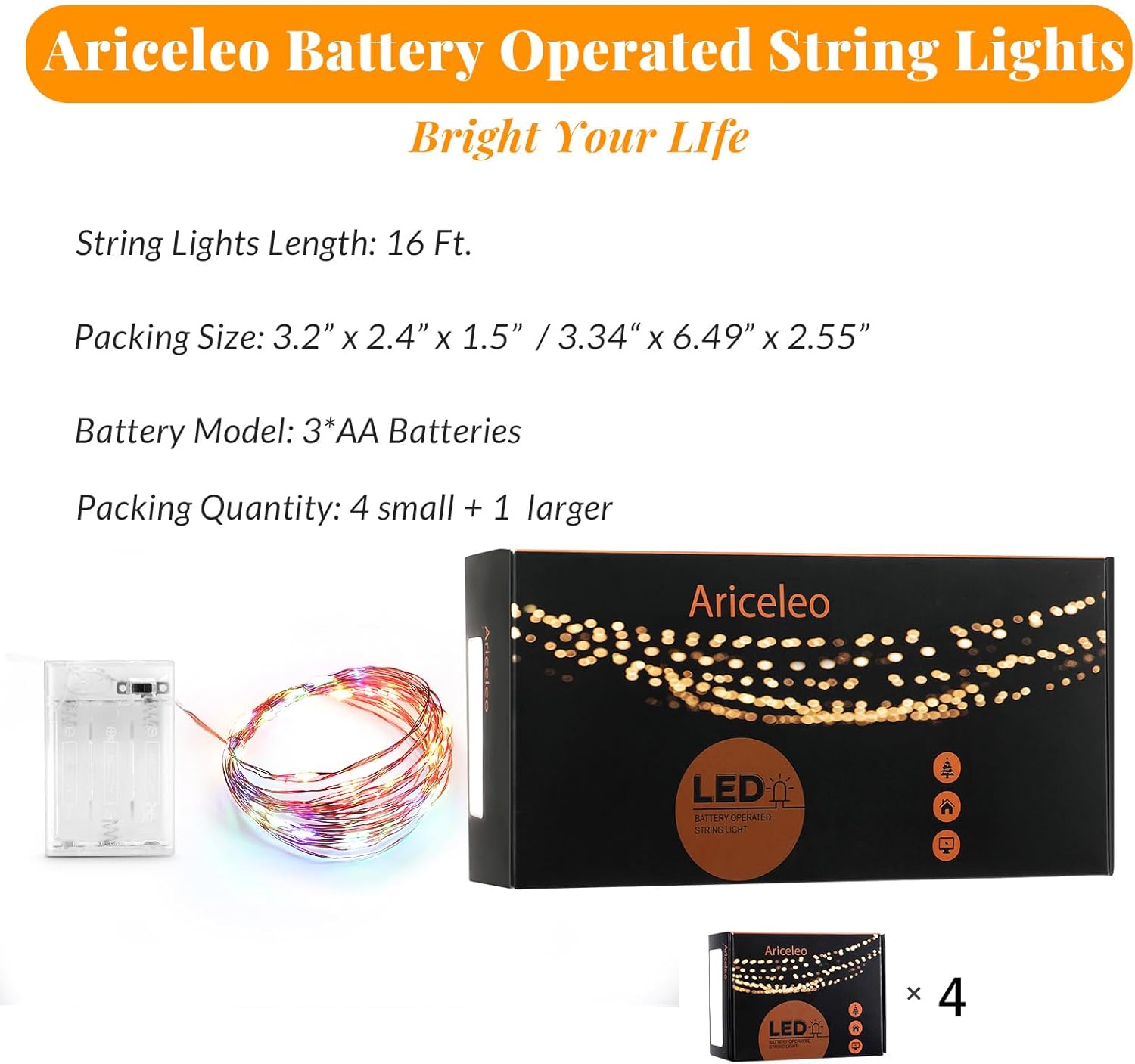 • *SUPER BRIGHT 50 LED STRING LIGHTS: These Best 50 LEDs Micro LED Battery Operated String Lights Lamp are perfect for using as a lighting addition to any decorative project. delicate copper wire hosts 50 very small LED bulbs that are about size of the rise grain and are intensely bright. With steady 360 degree viewing angle they illuminate in every direction.