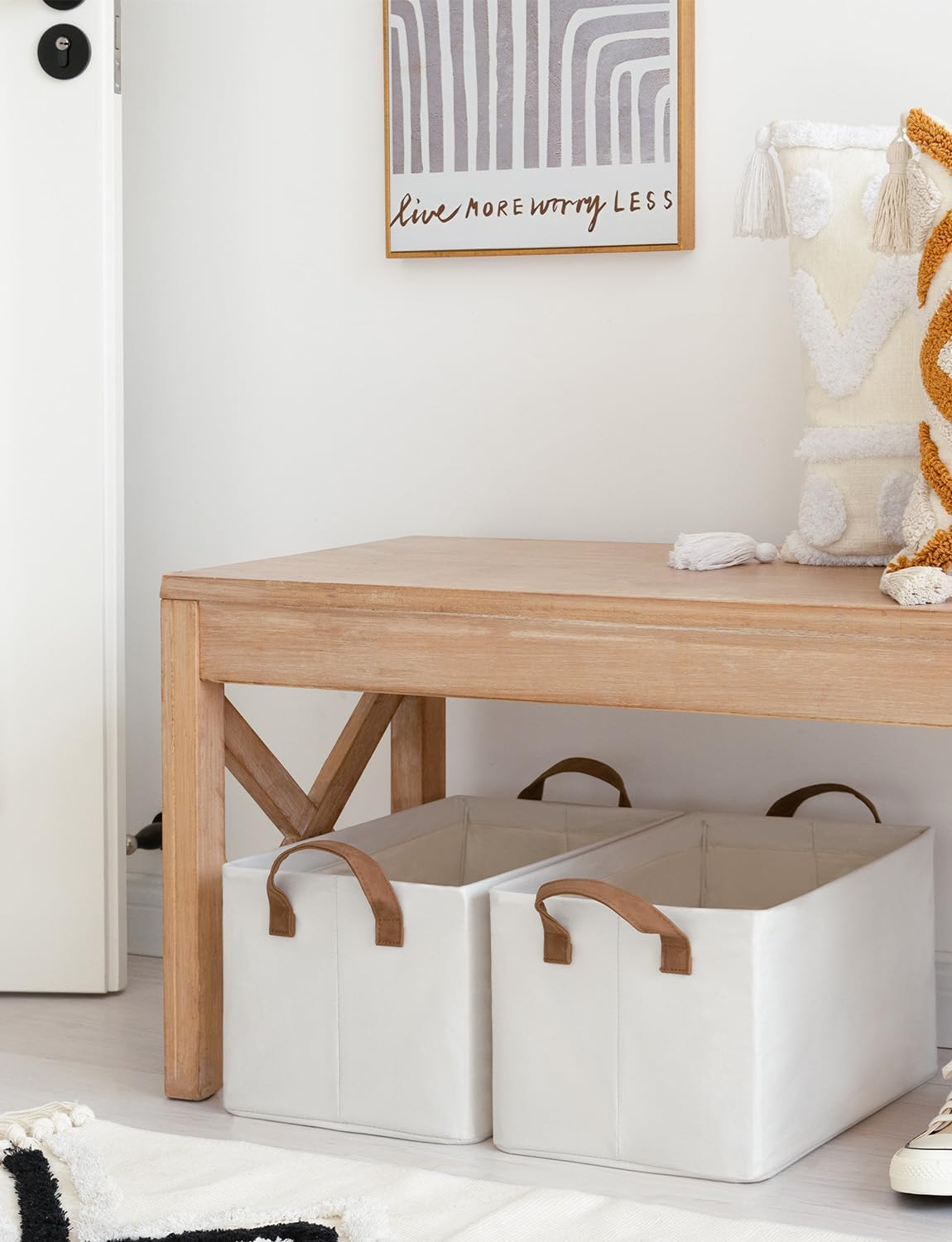 • Handle with Ease: With the 2 PU handles securely riveted to the sides of the storage bin, you can easily carry items without tearing the handles.