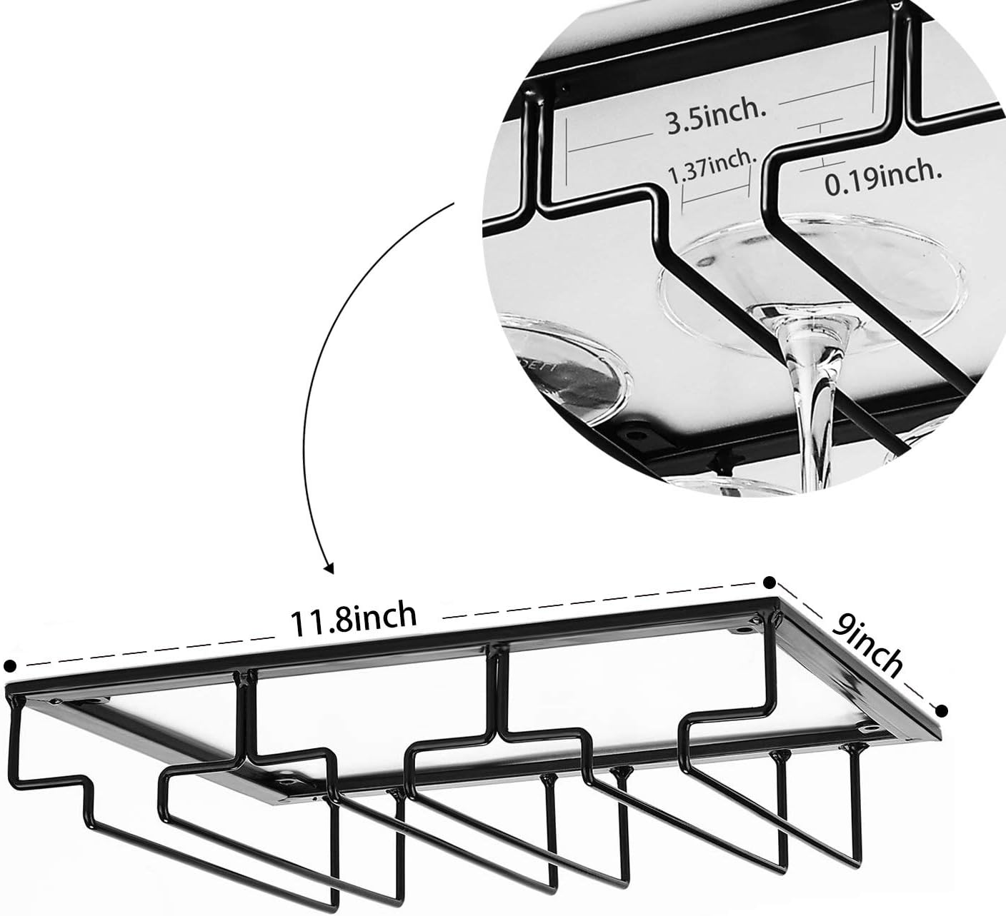 • 🍷Size: Length: 11.8 inch x Width: 9 inch x Height: 2.7 inch. Pls make sure our wine glass rack is suitable for your cabinet.