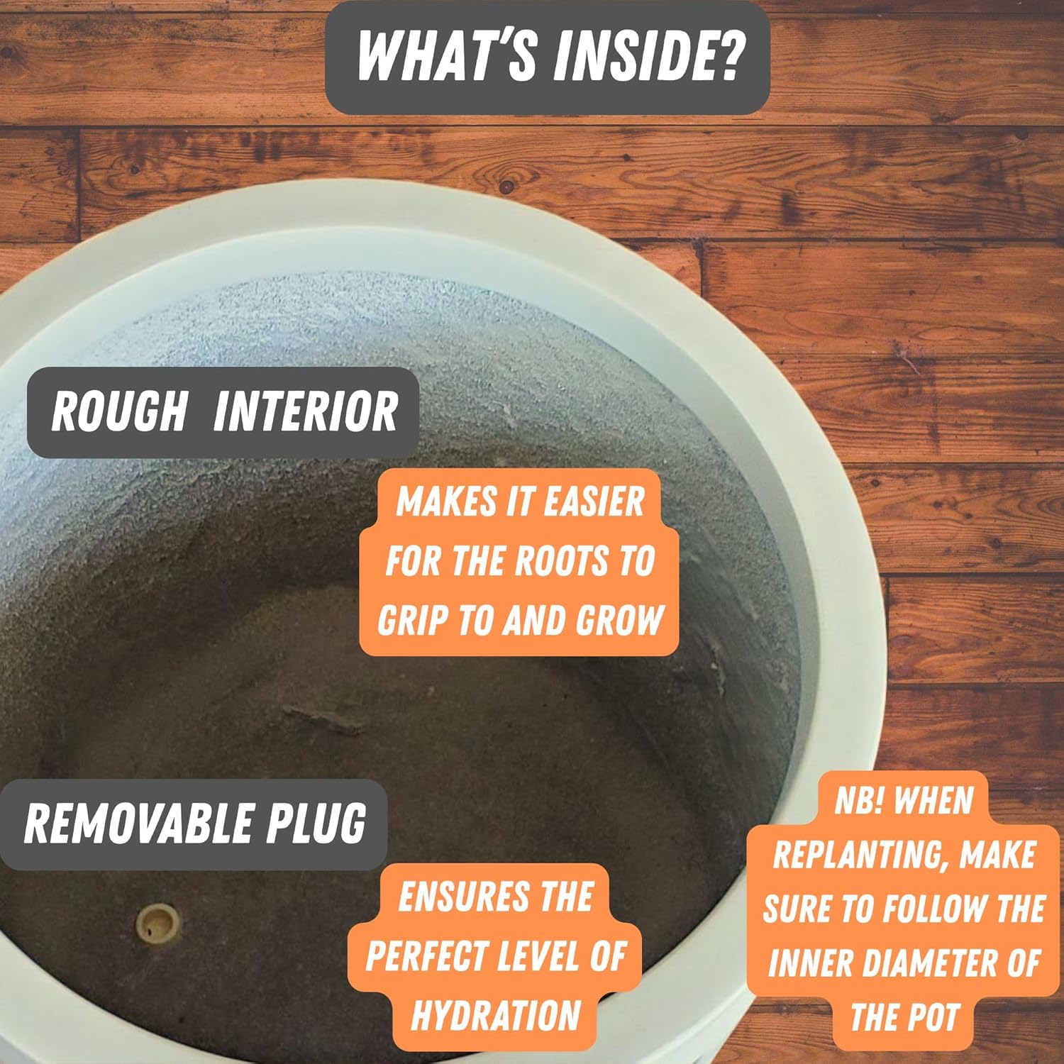 • PERFECT LEVEL OF HYDRATION – These extra large planters have a convenient drainage hole to allow excess water to flow out. The pots also come with a plug that you can easily remove and attach, offering the plants a perfect level of hydration.