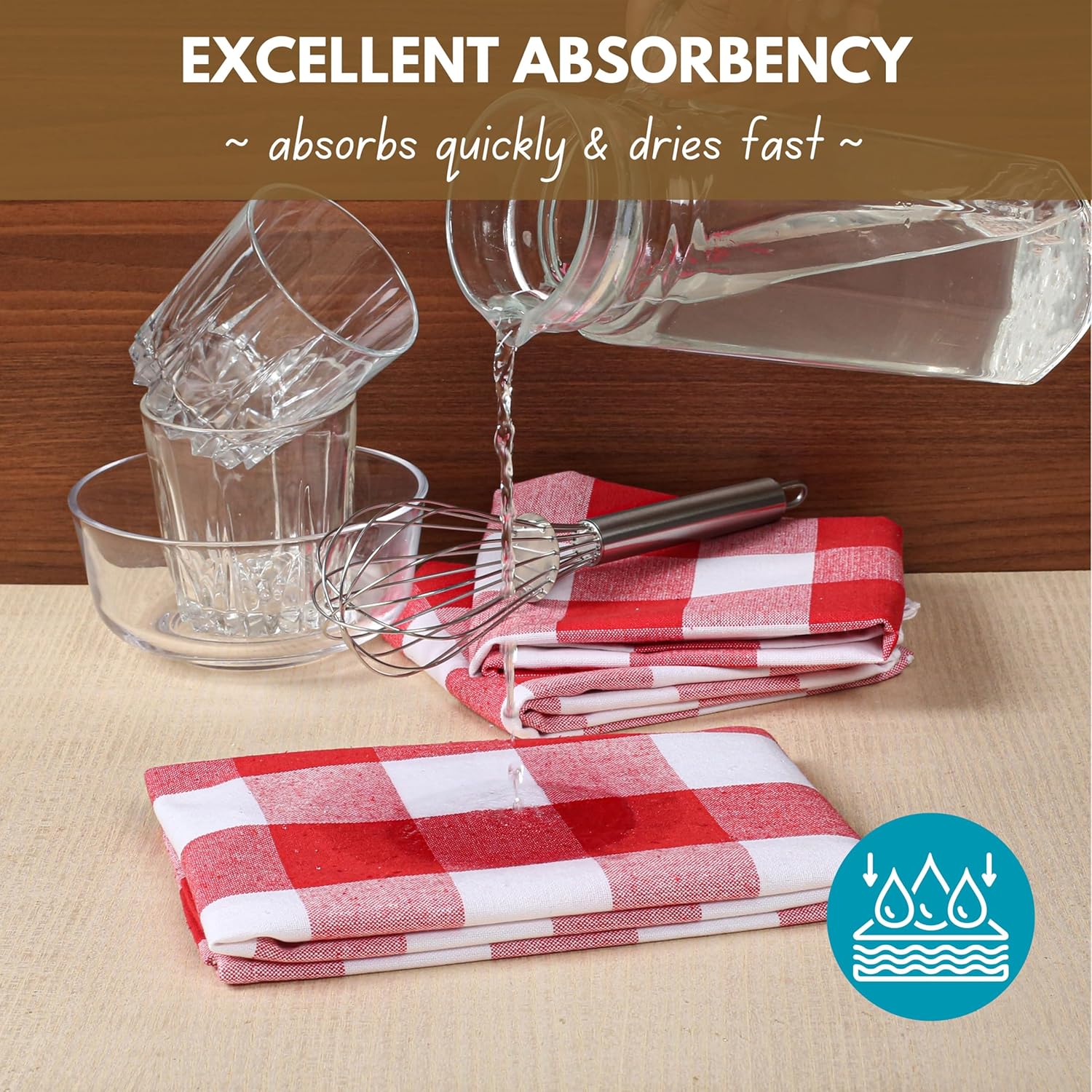 • SUPER ABSORBENT FABRIC: Quickly soaks up water and messes, keeping your kitchen clean and dry.