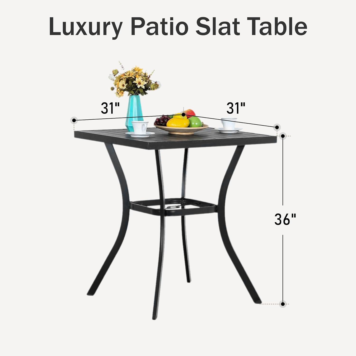 • Square Bar Table: Stylish modern metal bar design makes the slat steel bar table top, frame are sturdy and polished elegantly,easy to assemble and easily cleaned up with damp cloth and water