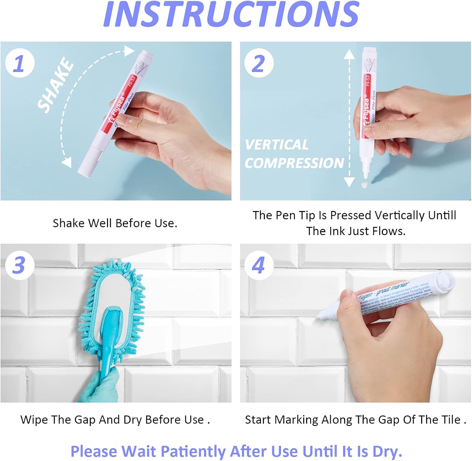 • Wide applications: the grout restorer pen lines are fast drying, just follow the grout lines to paint, it works on epoxy grout, mortar joints, any grout areas that start to become a bit dingy and covered with mold