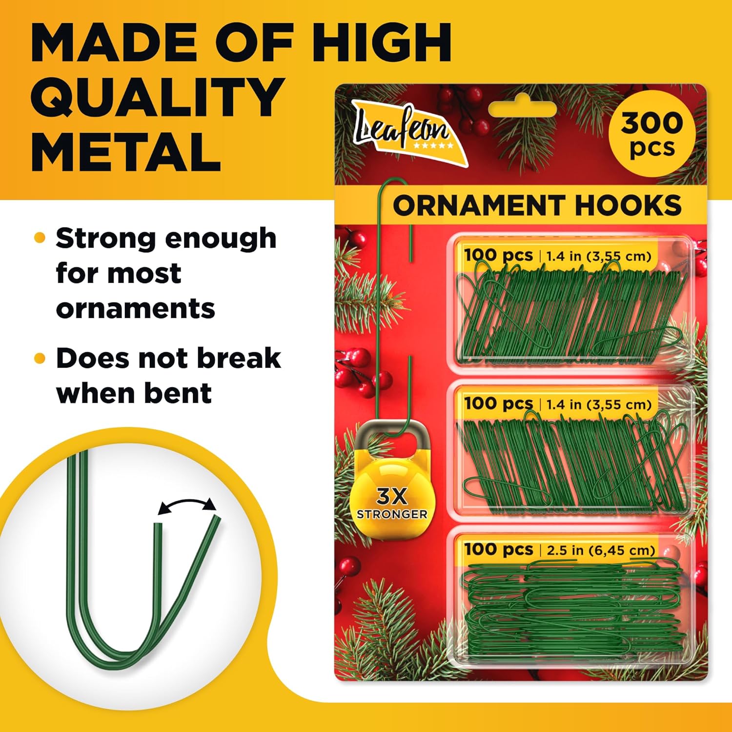 Leafeon 300 Pack Christmas Ornament Hooks for Christmas Tree Decoration โ€“ The Best Holiday Ornament Hangers (Green)