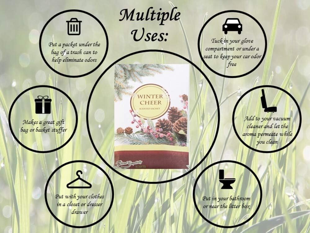 • SEASONAL AND TIMELESS SCENTS : It’s the most magical time of year, and our Winter Cheer sachet brings the Ideal holiday fragrance to your home. With a fragrant blend of pine and holly, accented by a light citrus top note, it’s the ideal scent to brighten any space and fill your home with festive cheer.