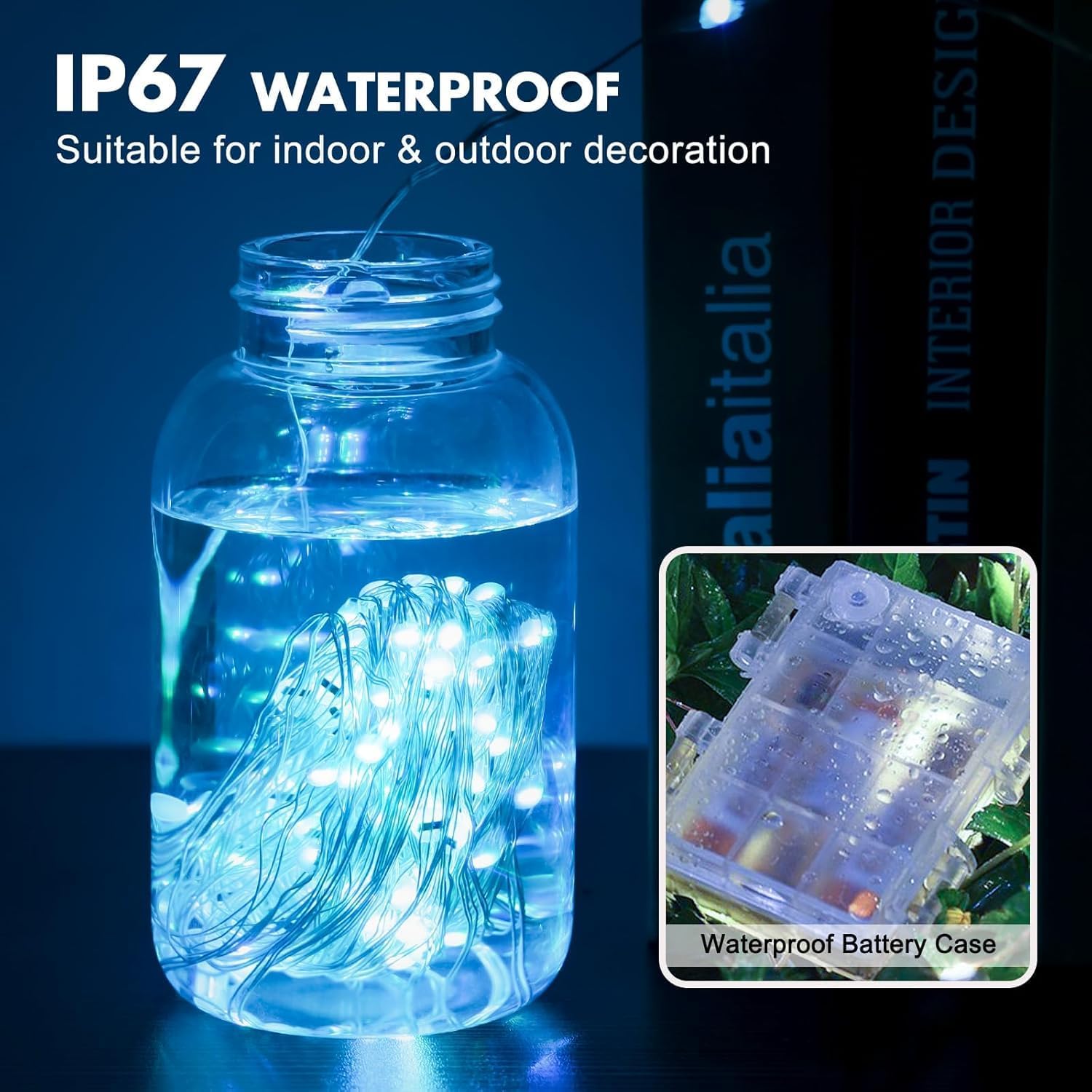 • 【Portable & Waterproof Fairy String Lights】The wire part of the led battery powered string lights are IP67 level, and it comes with IP44 waterproof battery case, it can be used indoor and outdoor without any worry of rainy damage or short circuitare. You can easily carry and place the battery led string lights anywhere you like