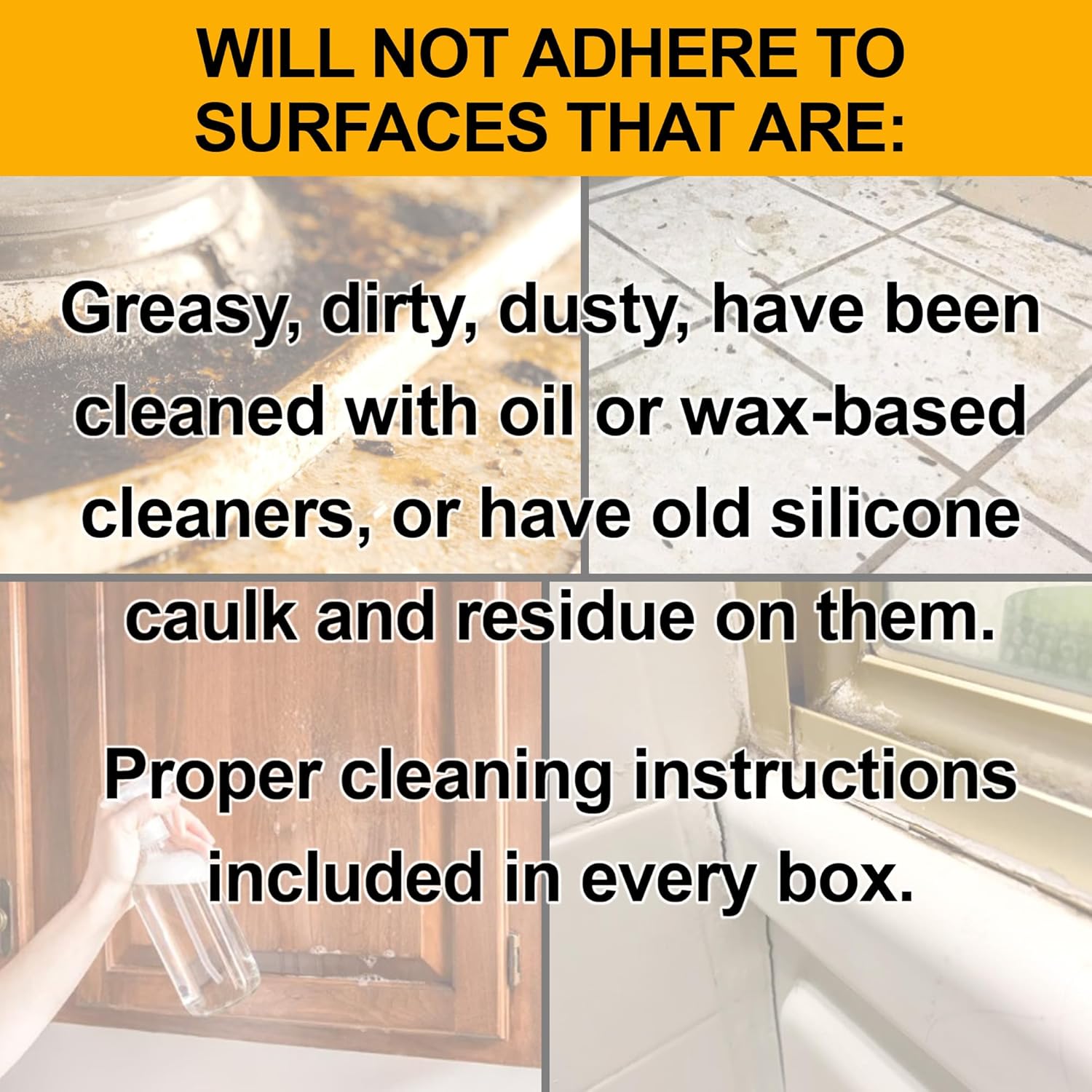 • Water & Stain Resistant Surface: Designed specifically for high-moisture areas, InstaTrim’s waterproof trim tape seals out water to prevent leaks and stains. Great for use around sinks, tubs, and showers, it provides durable protection that lasts over time, even with regular cleaning.