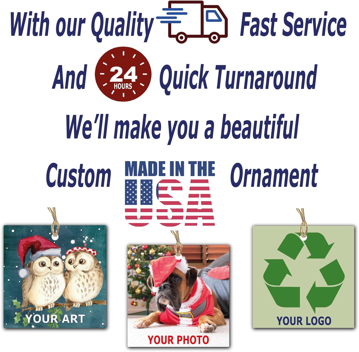 • Easy online designer: Make your own ornament, upload your photos, art works or logo than add text. Click customize now