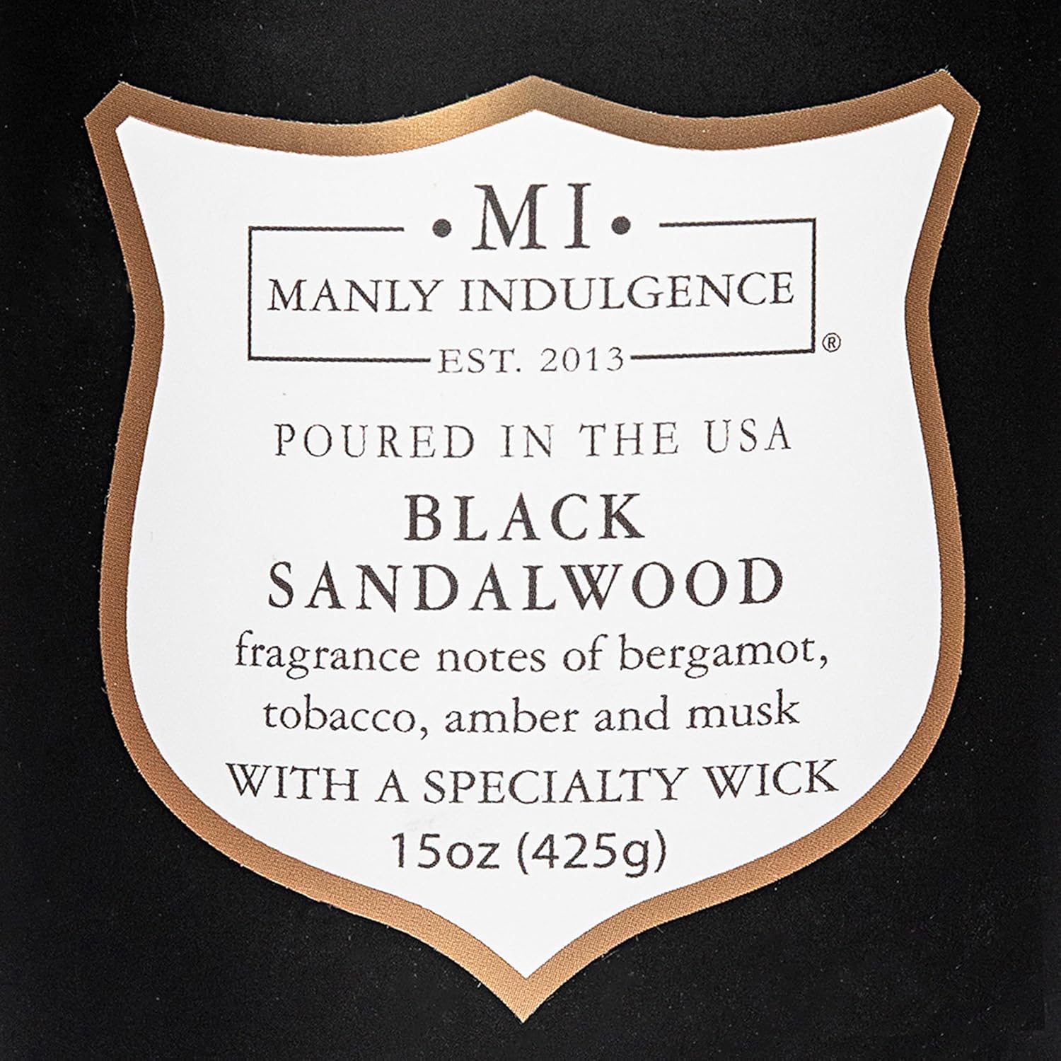 Manly Indulgence Black Sandalwood Scented Candle for Men 15 oz – Bergamot, Tobacco, Amber & Musk - Wood Wick - Up to 60 Hours Burn - Soy Blend Wax, USA Poured – Signature Collection