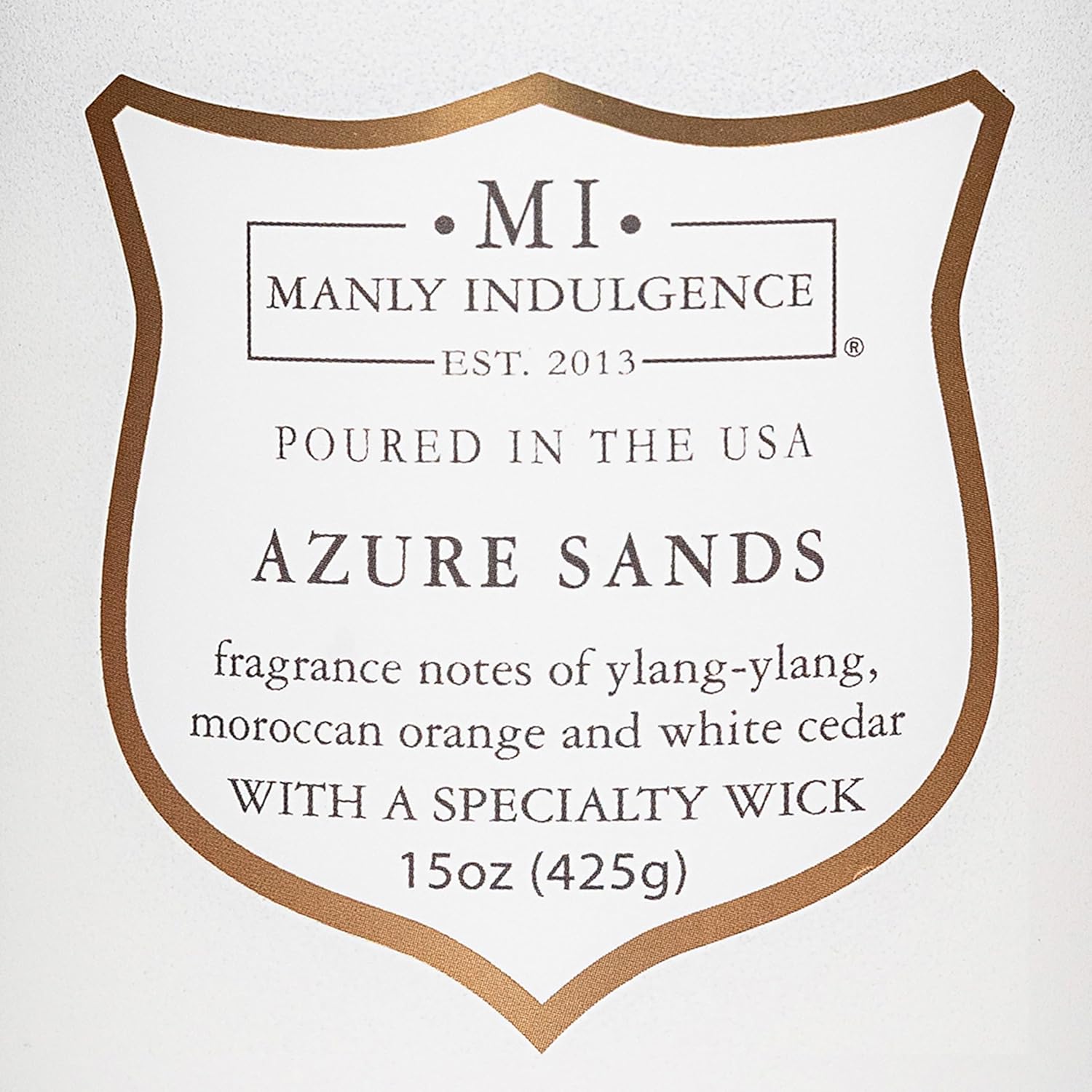 Manly Indulgence Azure Sands Scented Candles for Men, 15 oz Wooden Wick, Premium Soy Blend Wax, 60H Burn, Candles for Home Scented - Made in The USA
