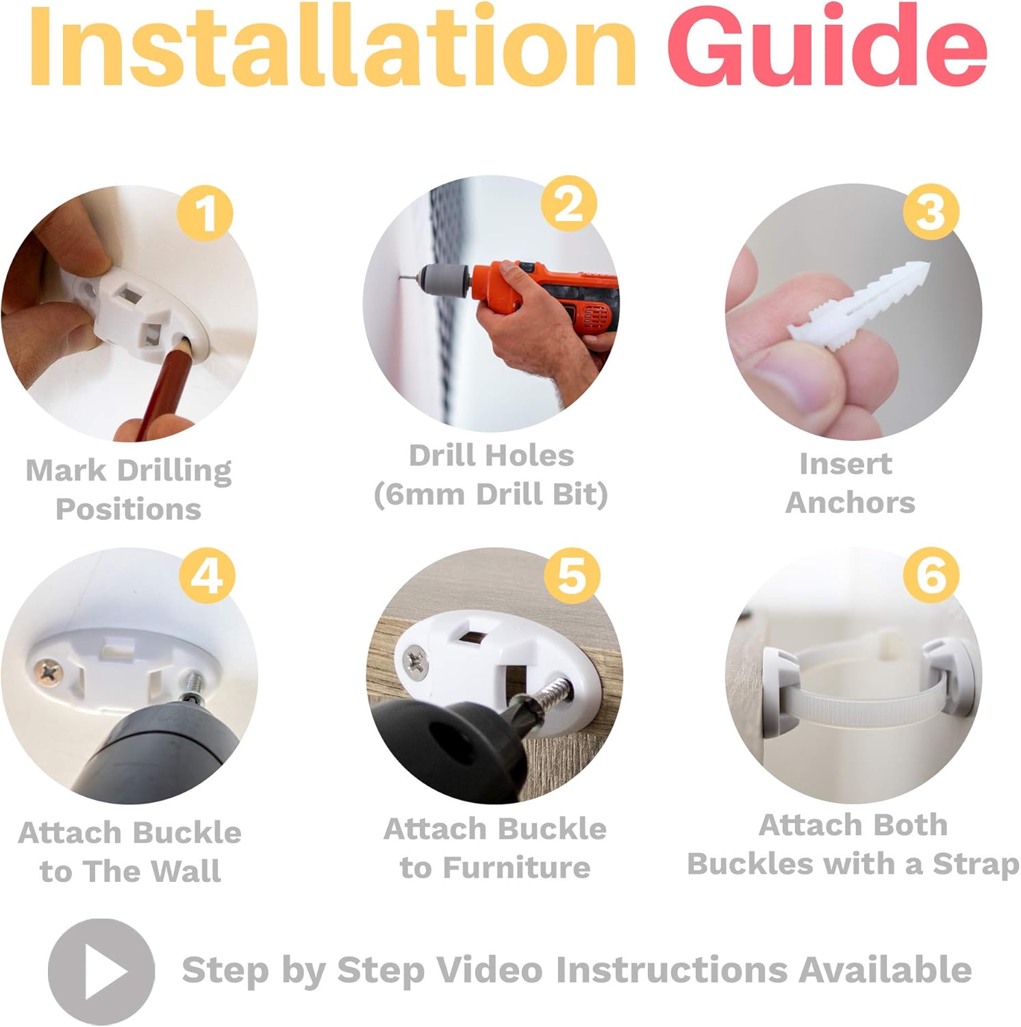 • 【Adjustable and detachable】- Easily attach, detach, and relocate your furniture to the wall via the wall anchors. The strong and adjustable straps offer great durability.