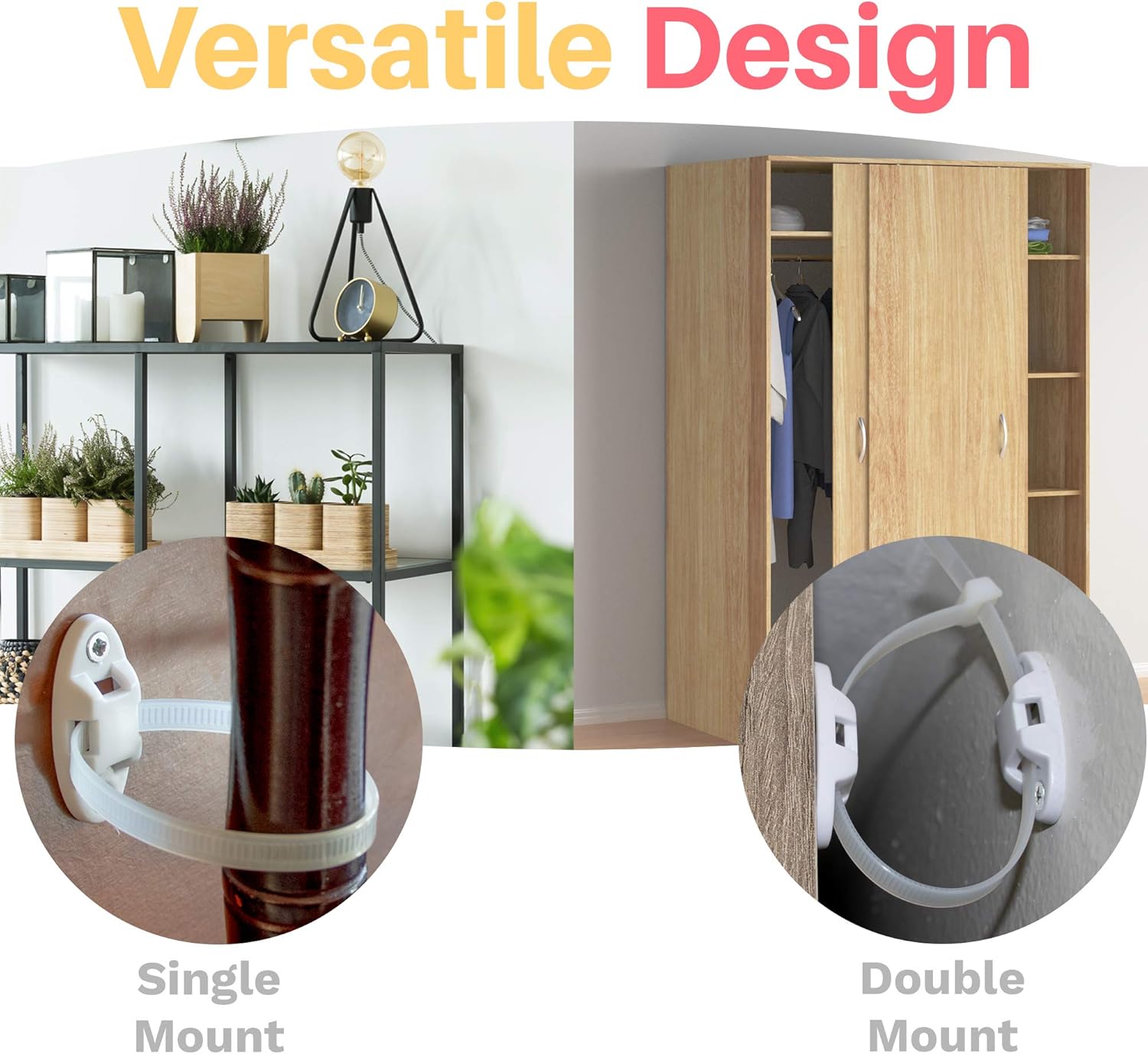 • 【Versatile design】- The anti-tip strong furniture wall anchor for baby proofing can be used to mount television stands, drawers, tables, bookcases, dressers, wardrobes, and other mounting friendly furniture.