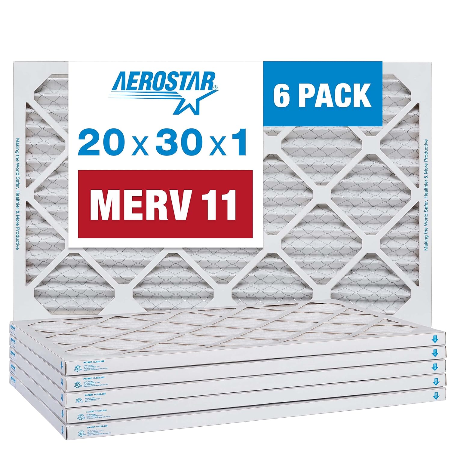 Aerostar 20x30x1 MERV 11 - 6 Count - Pleated HVAC, Furnace & Air Conditioner Filters - Removes Dust, Cold & Flu Germs, Lint, Mold, Pet Dander, Allergy-Causing Pollen, Smog & Smoke