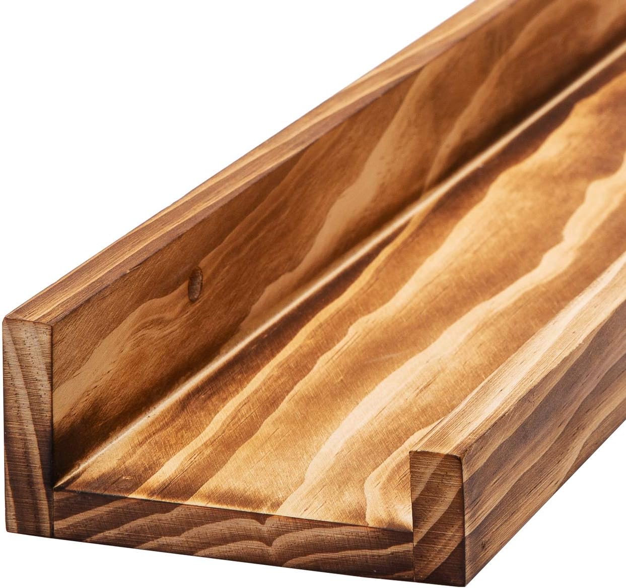 AZSKY 24" Floating Wall Ledge Shelf Wood Picutre Shelf Wall Mounted Nursery Kids Bookshelf Spice Rack Bathroom Storage Shelves Display Organizer Set of 2