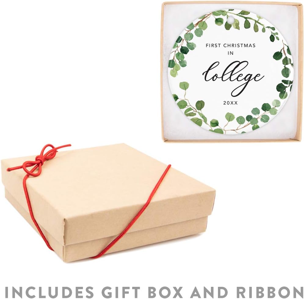Andaz Press Custom Year Round Ceramic Porcelain Christmas Tree Ornament Keepsake Collectible Gift, First Christmas in College 2025, Farmhouse Eucalyptus Wreath, 1-PackGraduation Gift Ideas
