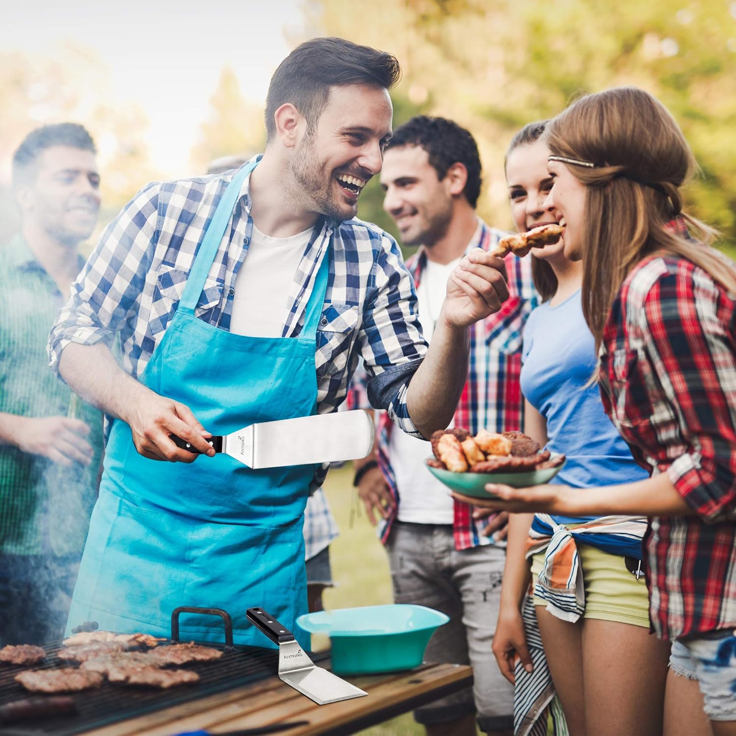 • Bevelled edges - help you to flip easily or even cut and chop food directly on the flat top gridlle grill . ​Heavy duty commercial spatula​ set also feature refined edges meaning no more scratches on your cast iron griddle top