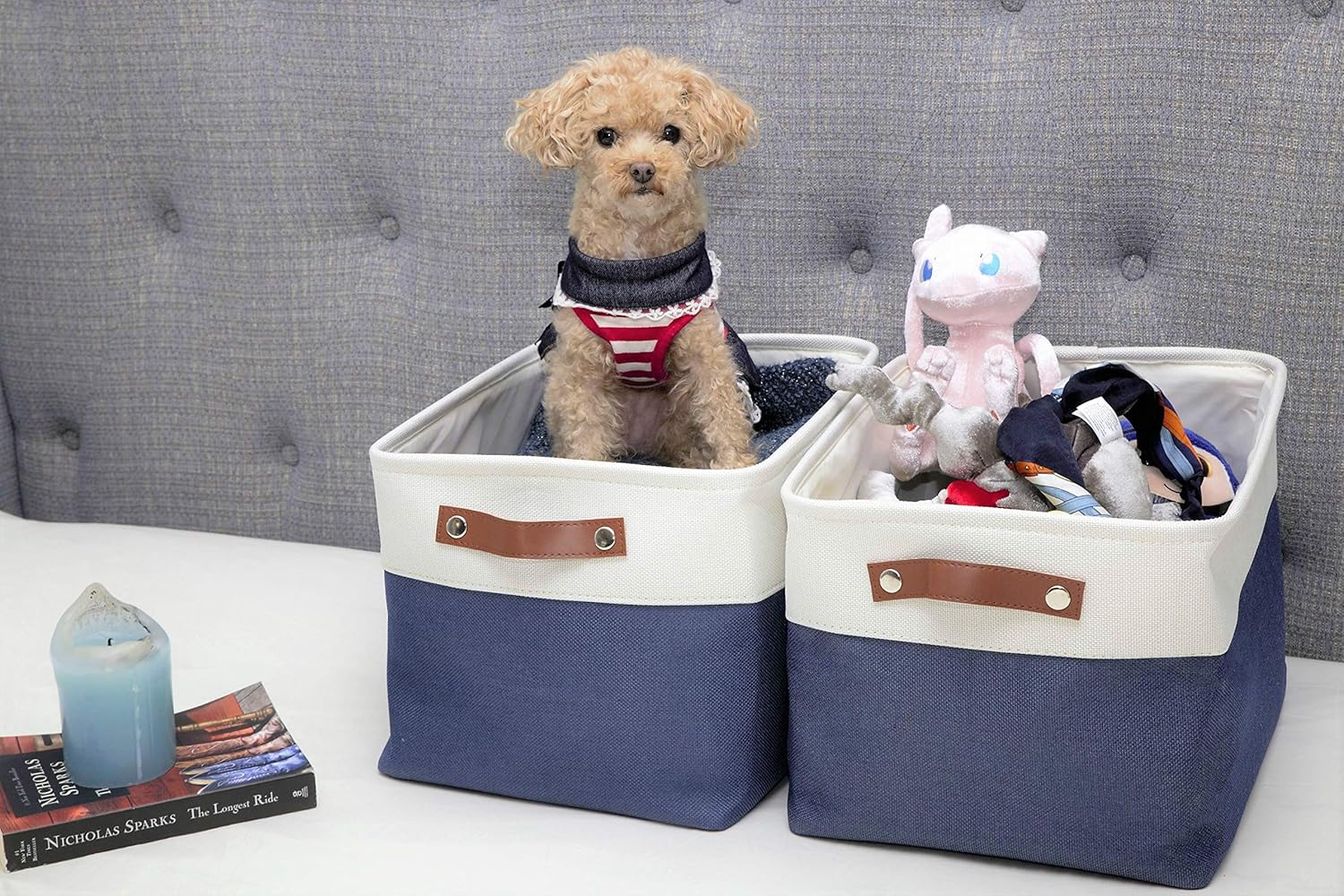 • Maintenance & Care Tip: Our baskets for shelves are made with EVA fabric which can be spot cleaned with light soapy water, not recommended to machine wash. Steam iron the storage bins or stuff with bedding to get rid of wrinkles.