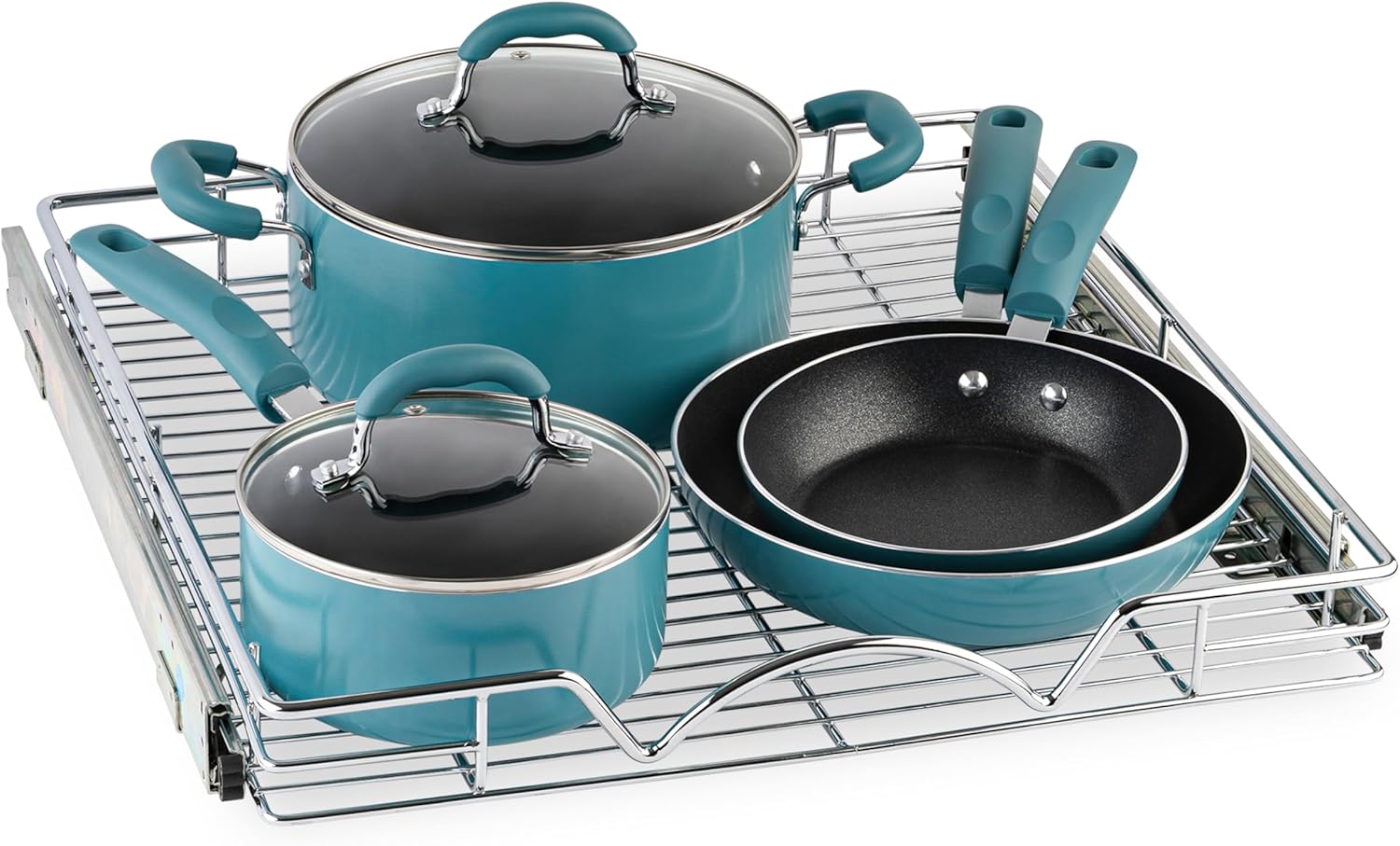 • A MUST HAVE PULL OUT DRAWER: This sliding cabinet organizer installs in under 30 minutes and makes it super easy to store, organize, and access spice rack, pots, and baking sheets.