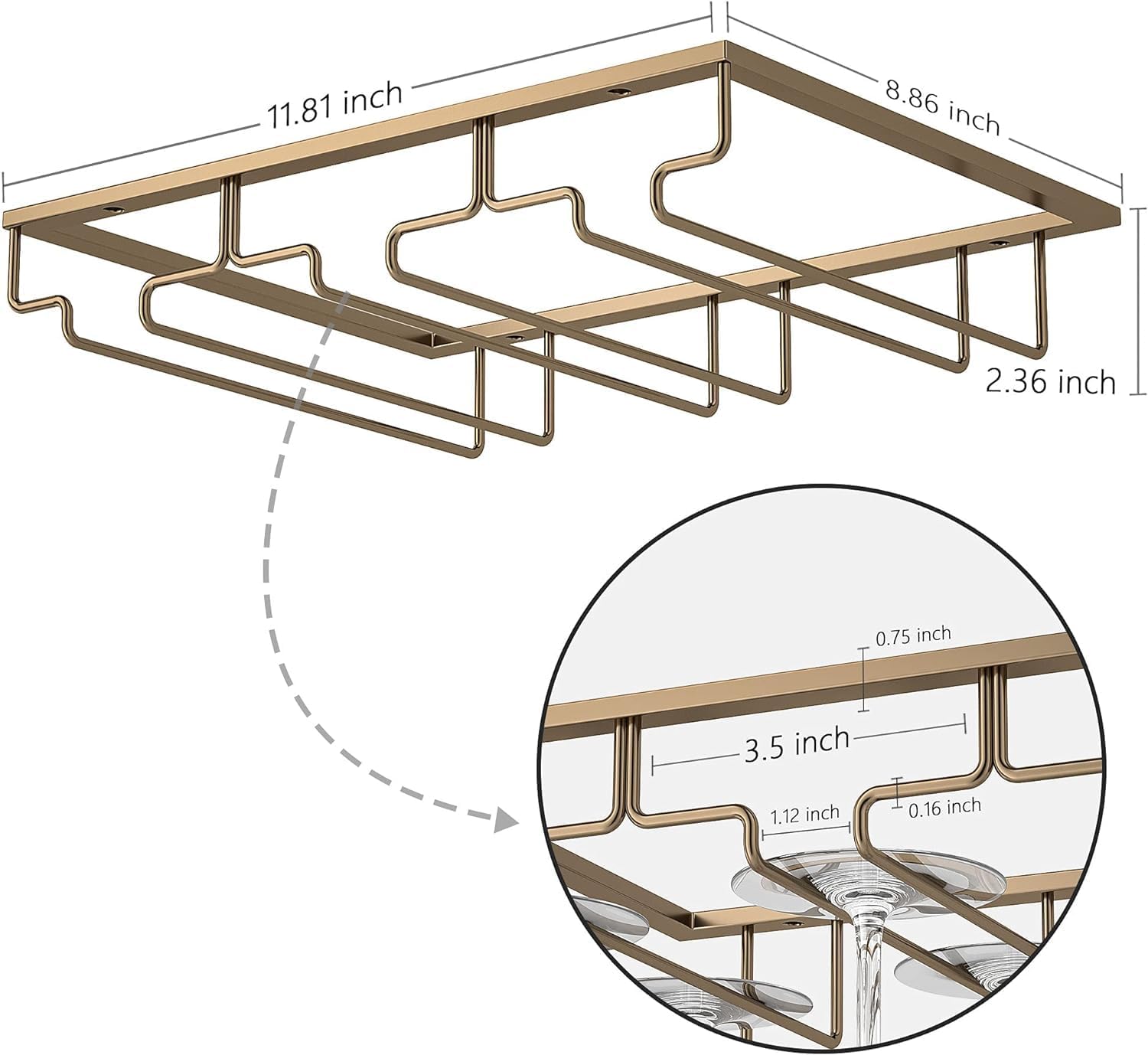 Wine Glass Rack - Under Cabinet Stemware Wine Glass Holder Glasses Storage Hanger 2 Pack Metal Organizer for Bar Kitchen Gold