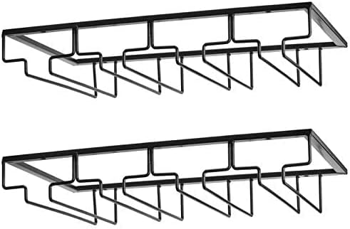 • 🍷SUITABLE FOR MULTIPLE GLASS TYPES - Depending on the size of the glass, each rack can hold up to 9 to 12 wine glasses with ease, suitable for a variety of glass types like Bordeaux/Burgundy glasses, Champagne glasses, cocktail glasses, etc. This wine glass rack also fits under most kitchen cabinets.