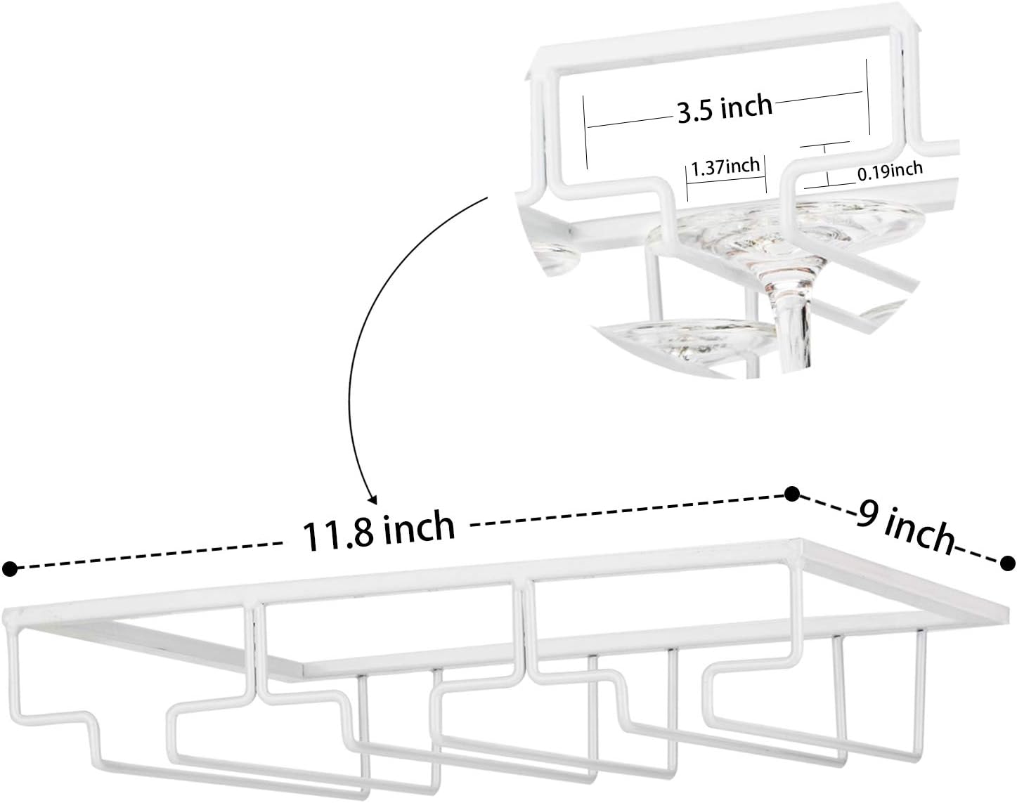 Wine Glass Rack - Under Cabinet Stemware Wine Glass Holder Glasses Storage Hanger 2 Pack Metal Organizer for Bar Kitchen White