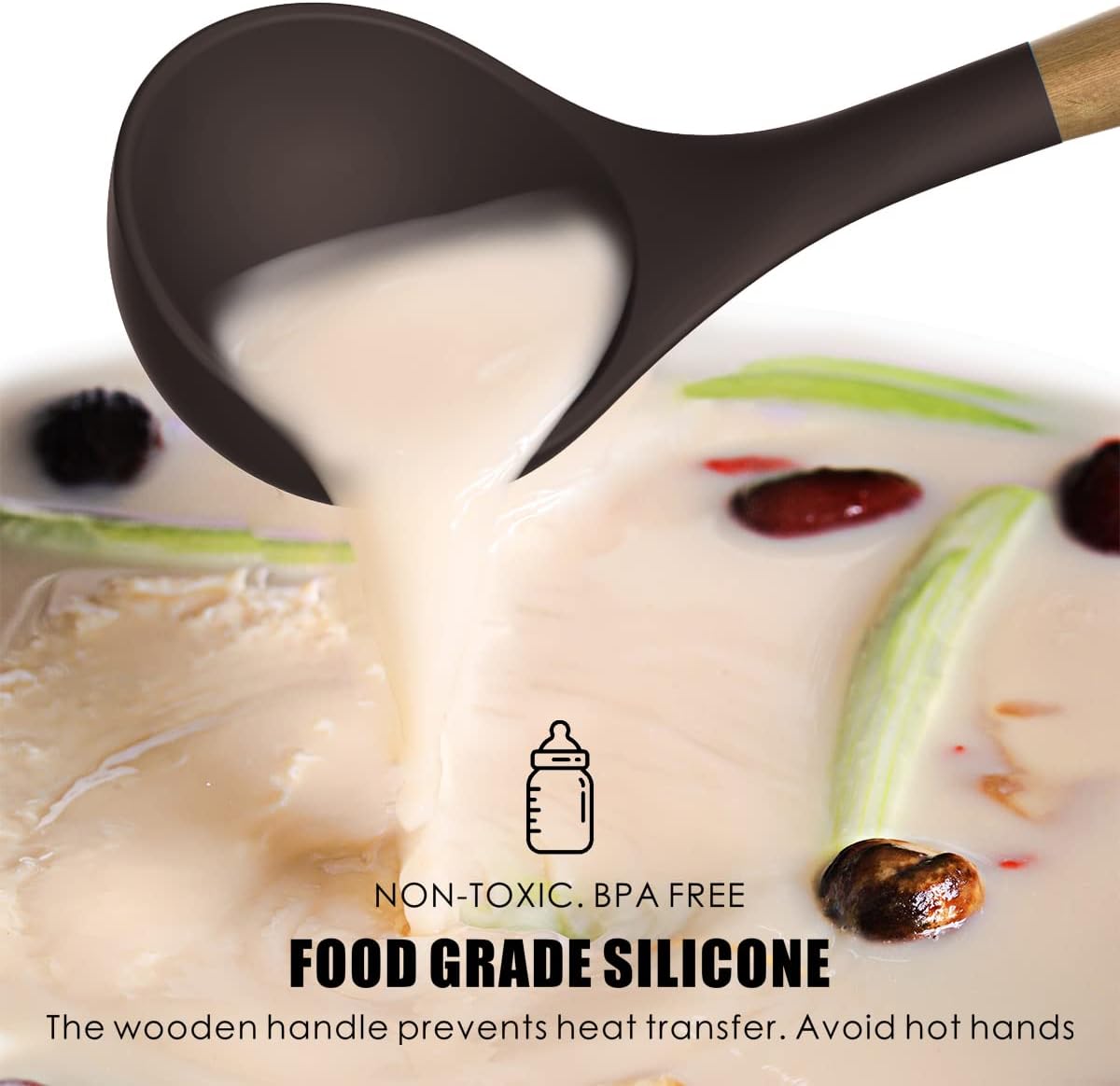 Silicone Cooking Utensils Set - 446°F Heat Resistant Silicone Kitchen Utensils for Cooking,Kitchen Utensil Spatula Set w Wooden Handles and Holder for Non-Stick Cookware, BPA FREE (Coffee)
