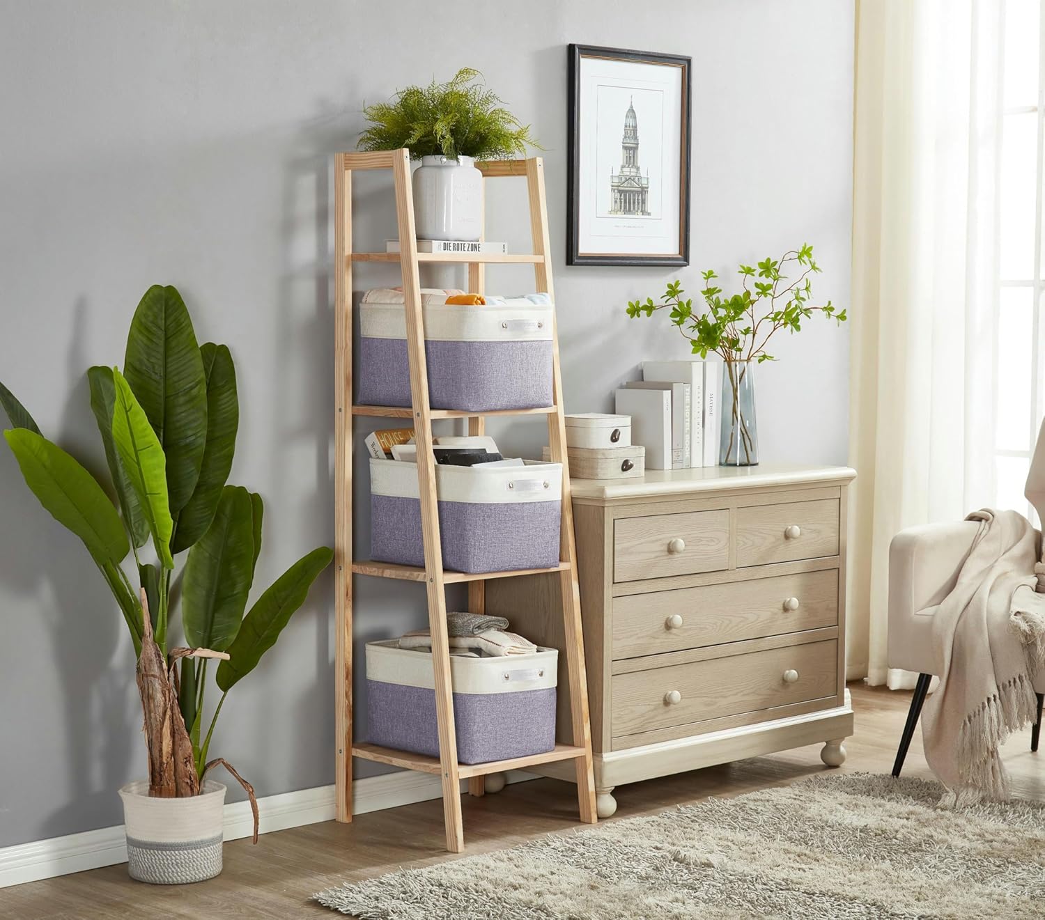 DECOMOMO Storage Bins Fabric Storage Baskets for Shelves, Linen Closet Organization Toys Nursery (Purple and White, Large - 3 Pack)