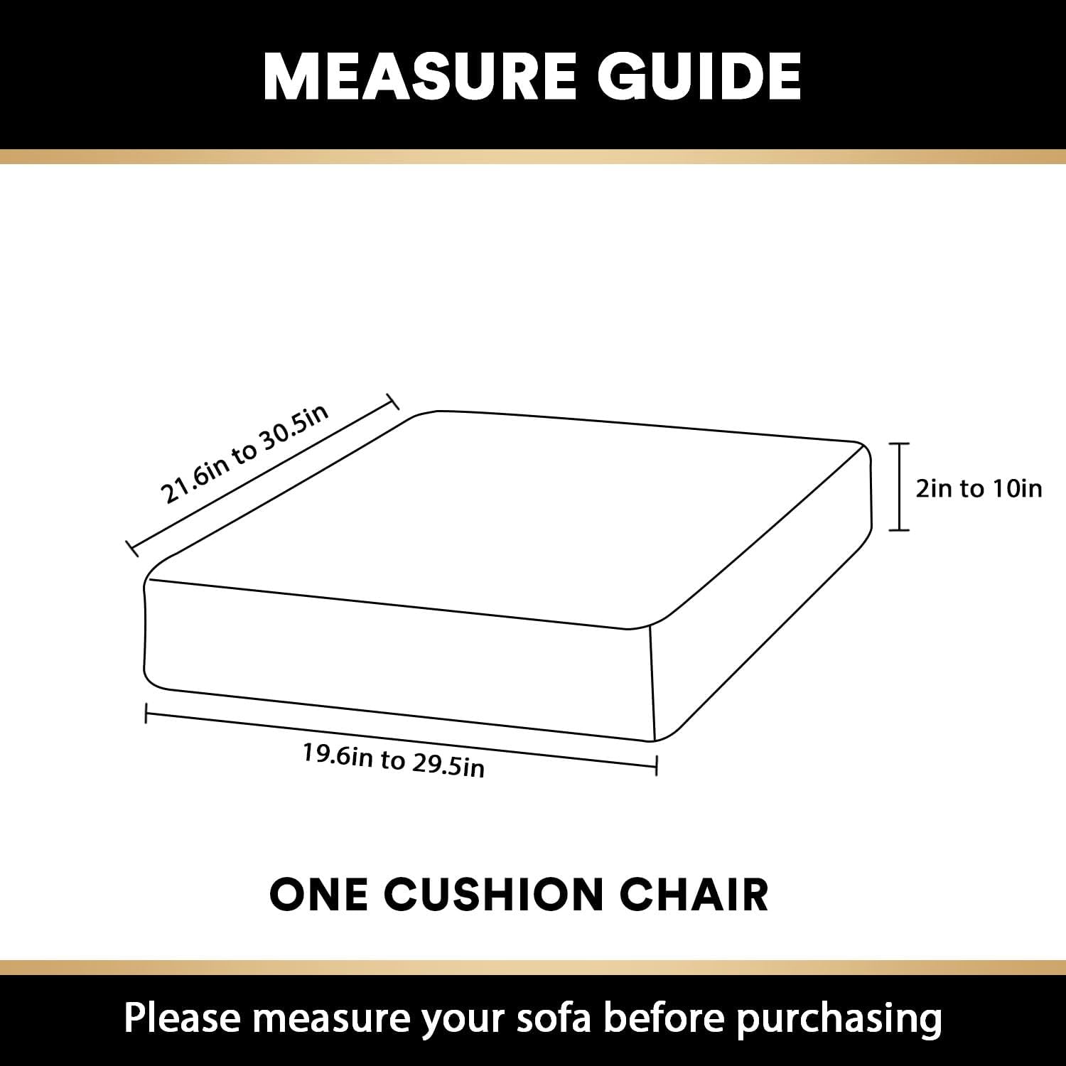 • GREAT FIT:1 piece seat cushion covers included. Each cushion cover measures: 19.6-29.5" length, 21.6-30.5" width and 2-10" thickness (height). PrinceDeco couch cushion covers are as close to custom as you can reasonably purchase. High recommended for both leather and cloth furniture.