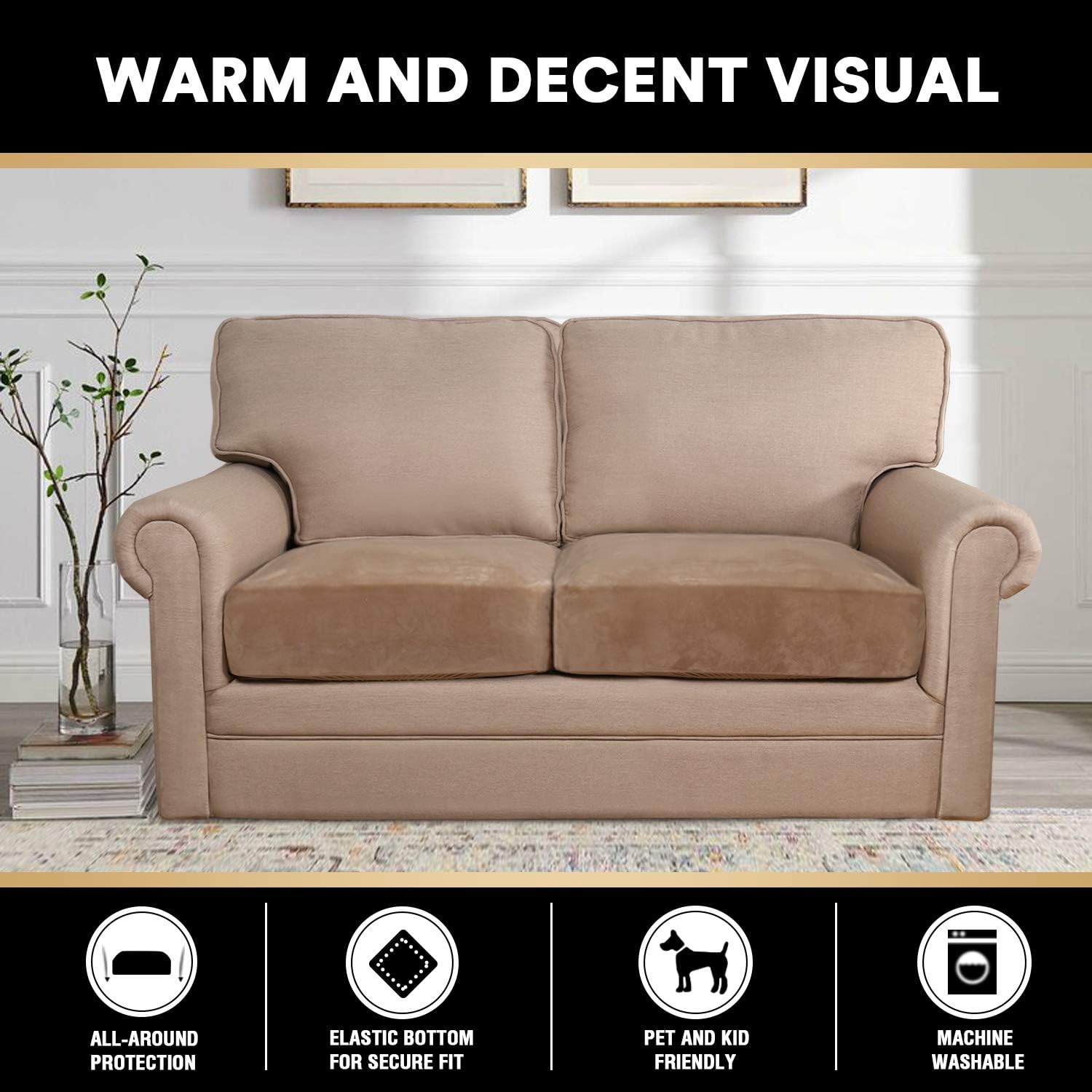 • PET FRIENDLY:Protect your cushion furniture from daily wears and tears, stains, scratches from pet claws, dogs or accidental spills. The antidote to the dust and dirt of everyday living. Perfect for messy kids and pets. Separate seat cushions require no re-tucking.