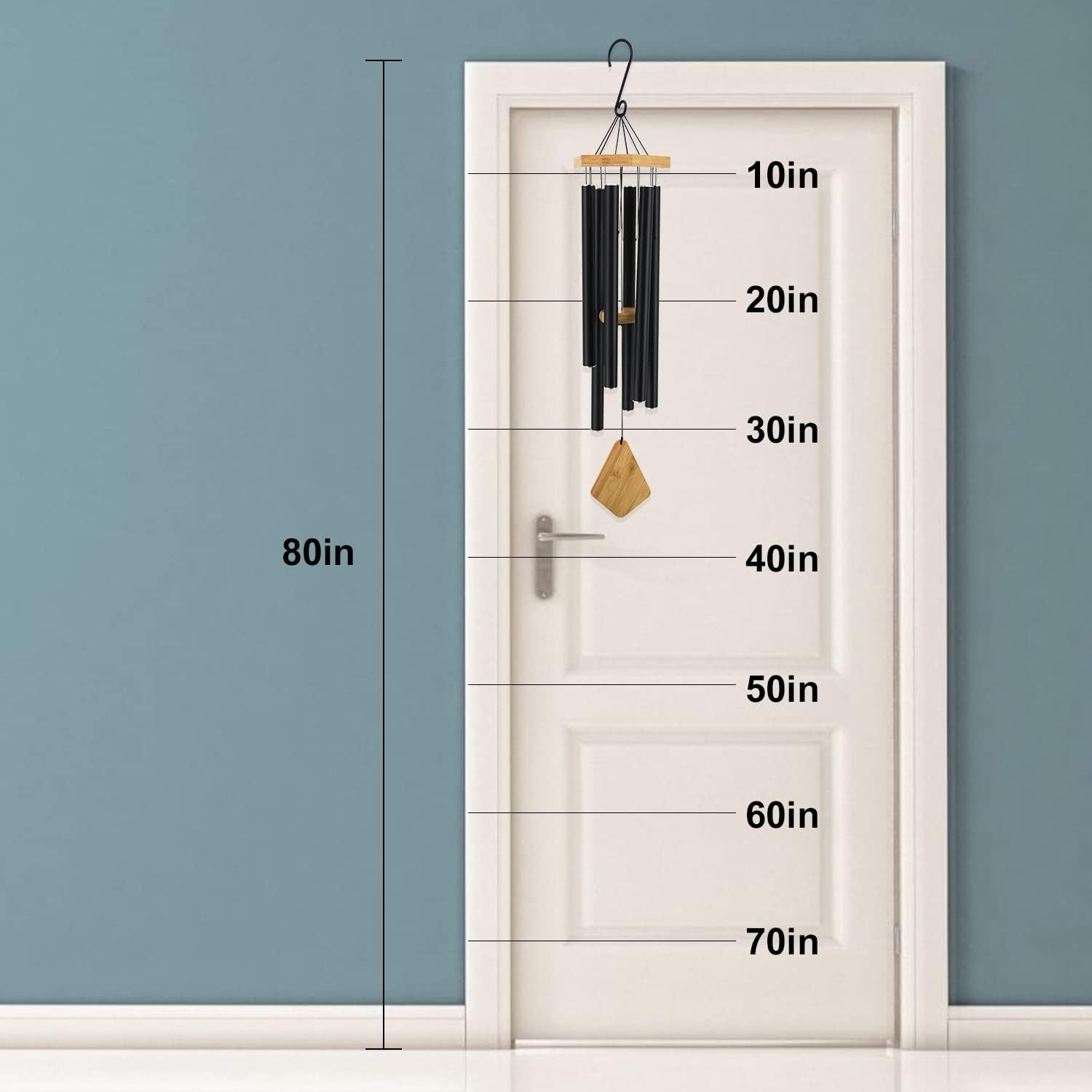 • Unique Wind Chimes Design-36-inch height from hanging hook to bottom wind catcher, the top beech wood offers a unique look. Secured with black nylon string, they hang from a strong S hook, EASILY TO HANG. 6 aluminum powder-coated tubes are hand-tuned; you can enjoy peaceful melodies that play as a whisper in the wind.