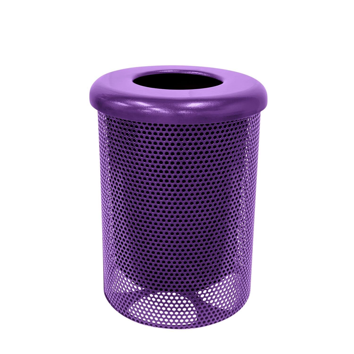 COATEDOUTDOORFURNITURE RFT-P-PUR Heavy Duty Round Trash Receptacle with Flat Top, Liner Included, 32 Gallon, Purple, Made in America