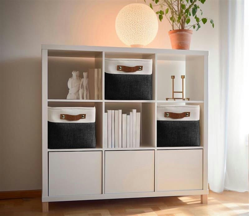 DECOMOMO Storage Bins Fabric Storage Baskets for Shelves, Linen Closet Organization Toys Nursery (Black and White, Large - 3 Pack)