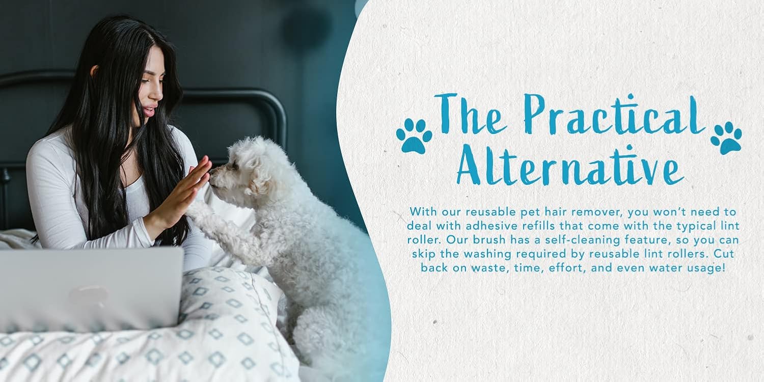 • REUSABLE LINT AND PET FUR REMOVER BRUSH - 100% Reusable pet hair remover for environmentally conscious and cost-conscious pet owners. Saves you money since no refills are required. No more sticky sheets for hassle free cleaning. Cut back on waste and effort and leave the lint rollers behind.