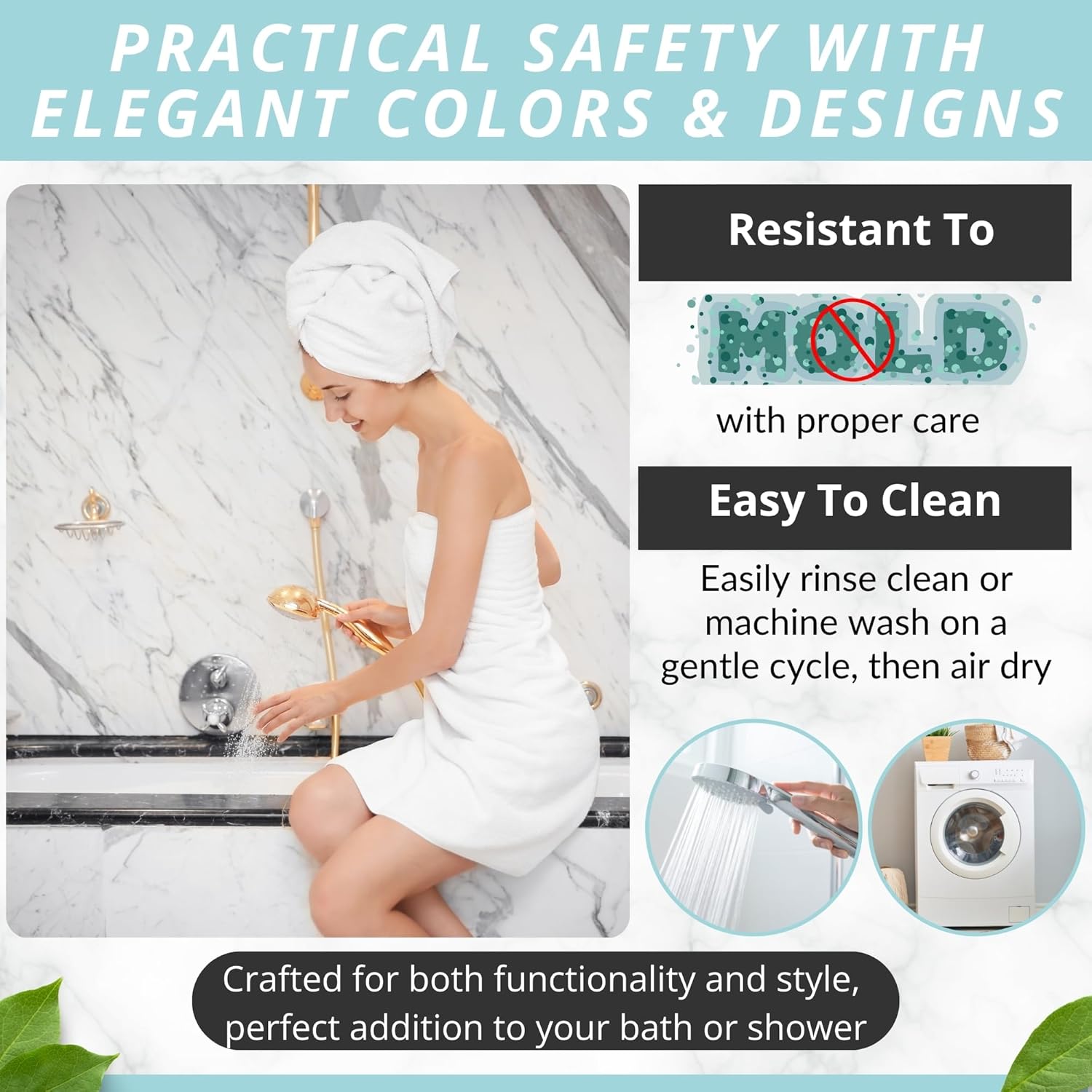 • Modern, Sturdy & Made To Last: Complement your stylish bath rugs décor with an eye-catching bath mat in many color variations. Place it in the washing machine, to keep it fresh, clean and hygienic for a long time!