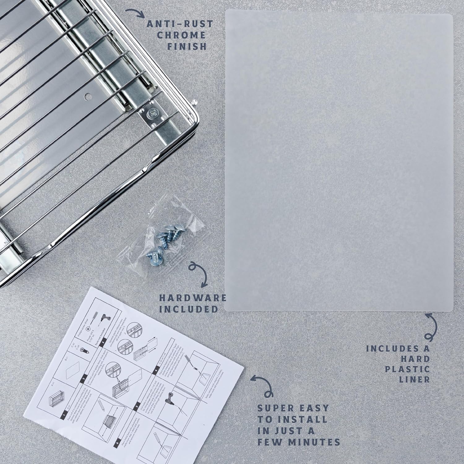 Pull Out Cabinet Organizer for Spices, Cans - Heavy Duty with Lifetime Limited Warranty- Pull Out Spice Rack- Cabinet Pull Out Shelf for Cans,Dishes, Etc, 8-1/2"W x10-3/8"Dx8-7/8"H, Chrome